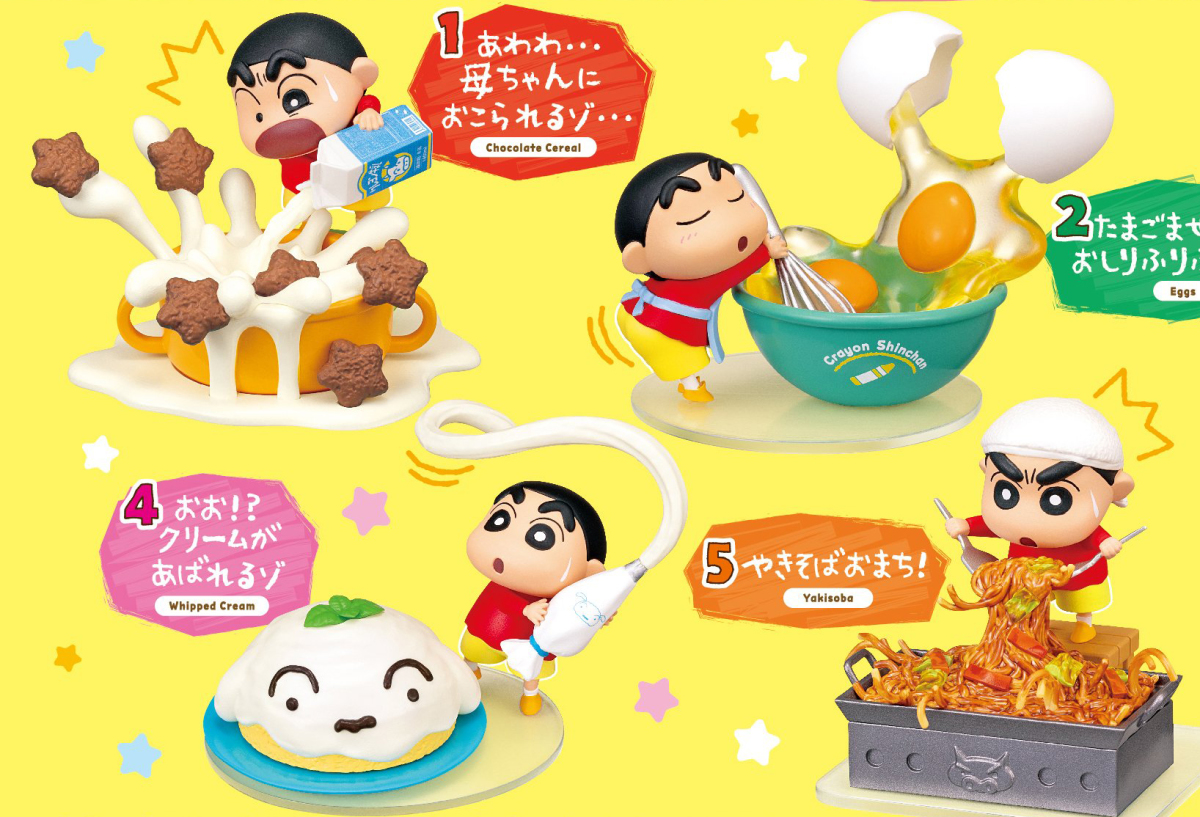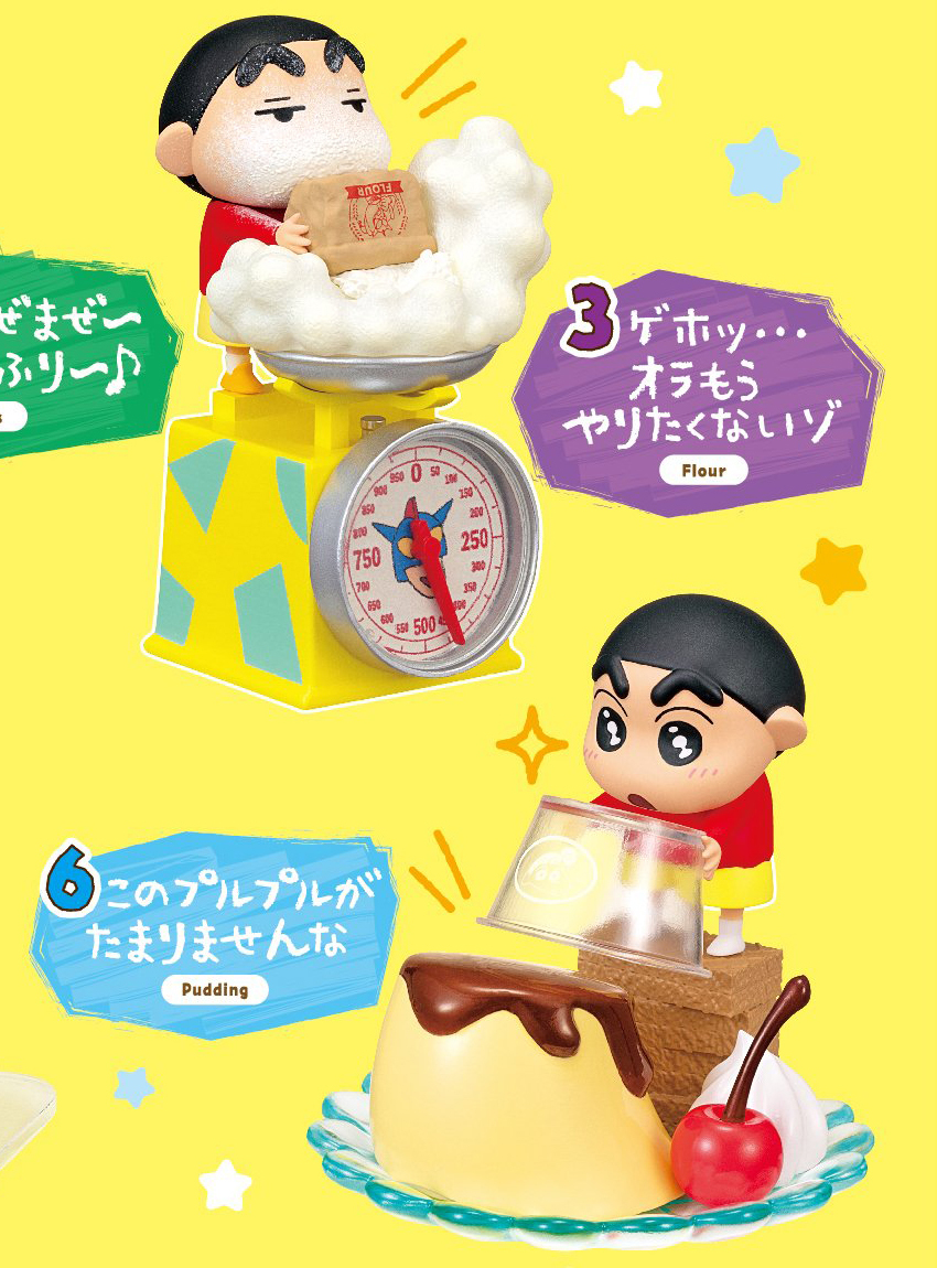 主打「與新之助一起享受興奮又刺激的料理時光」!這次的盒玩新作讓小新彷彿化作一個超迷你的小幫手,與你一起完成許多的料理步驟,當然,他是小新,總會有些意外發生的~像是一口氣倒出過量的牛奶、沒有掌握好的整袋麵粉倒光光、飛在半空中的鮮奶油......等,不過他依舊很認真幫忙,像是炒炒麵跟倒出布丁,每個小新都超級可愛。加上動感超人圖案磅秤、小白造型甜點這些元素,真的很想整套入手啊。