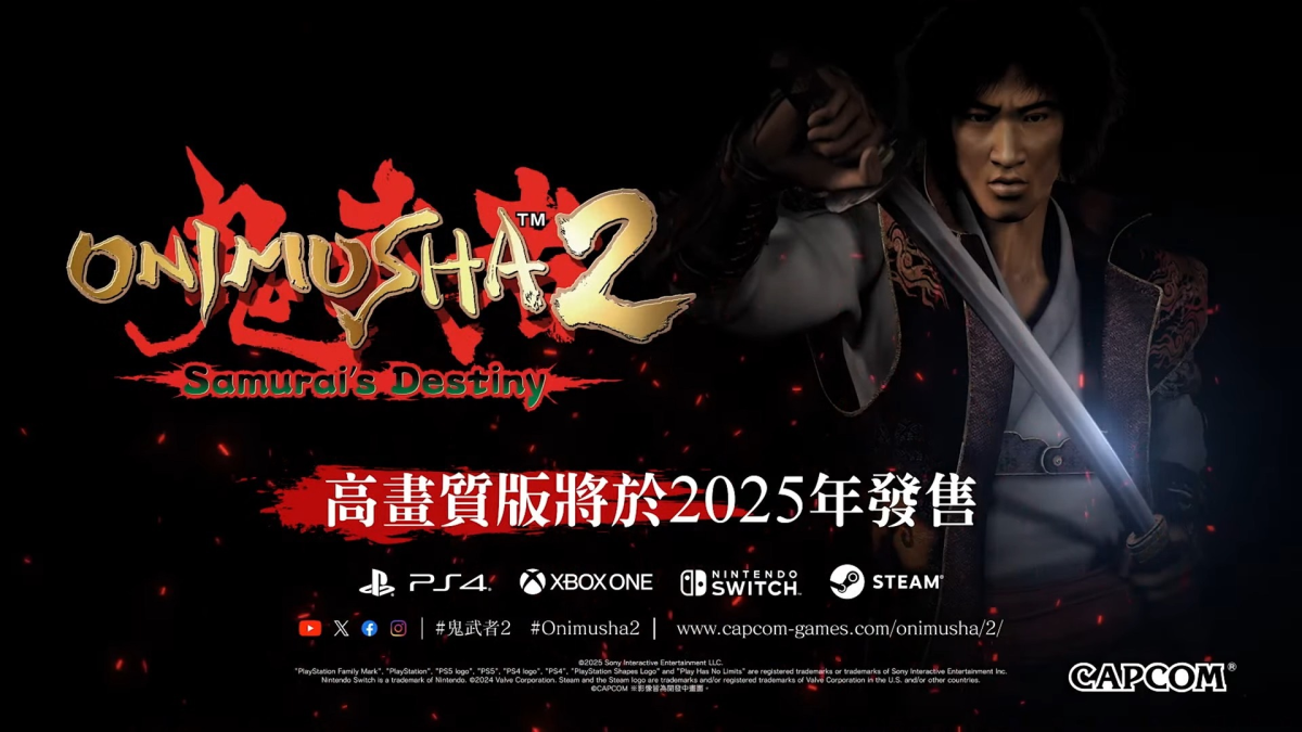 今日 ( 2/5 ) 在官方 YouTube「Capcom Spotlight + Monster Hunter Wilds Showcase Feb 2025」節目中,揭露了《鬼武者 2 高畫質版》將於 2025 年在 PS4、Xbox One、Switch 與 Steam 平台推出。