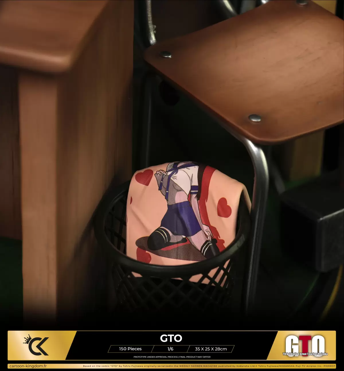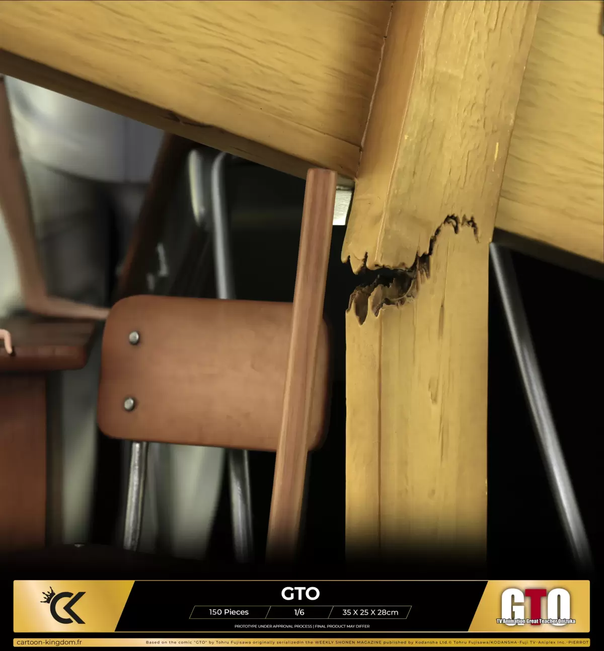 這次的雕像讓鬼塚英吉與擁有異色雙瞳、IQ 高達 200 的天才美少女「神崎麗美」一起登場,鬼塚身穿白色西裝、白皮鞋,準備點菸吊兒郎當的模樣十分經典,身穿高校制服的神崎則呈現出雙手向後支撐的坐姿,可以在場景中看到許多 GTO 的元素,包含教室課桌椅、鬼塚喜歡的內衣褲跟色情周邊,還有那張超經典的「鬼塚&訓導主任」變態合成照(大笑)。