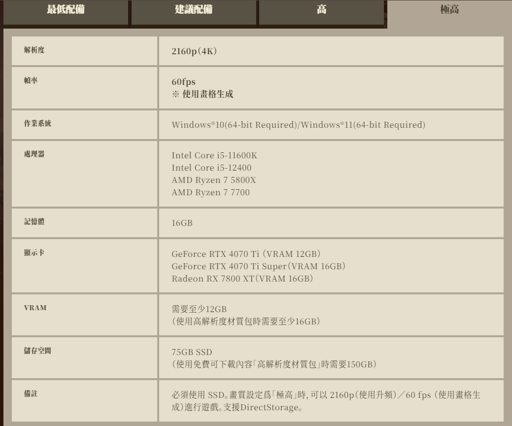 事實上,就依照CAPCOM所釋出的標準,不管你是開啟4K畫質遊玩,還是仍然1080P,起碼都得在10250分以上才能算是順利遊玩,在這分數以下的,就得要趕快花點錢換掉你老舊的設備,才能夠進行遊戲。