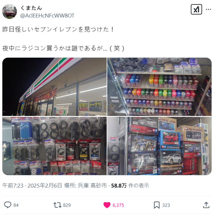 近日日本 X 上,有推主發現一家 7-11 超商,居然店內有賣「模型工具」、「遙控車與零件」,讓他大為吃驚居然 7-11 這種超商裡,可以擺出這些讓人意想不到的商品,這分享也引起網民熱議,似乎不只有這間店有,日本各地都有些超商跟一般店鋪有些不同。