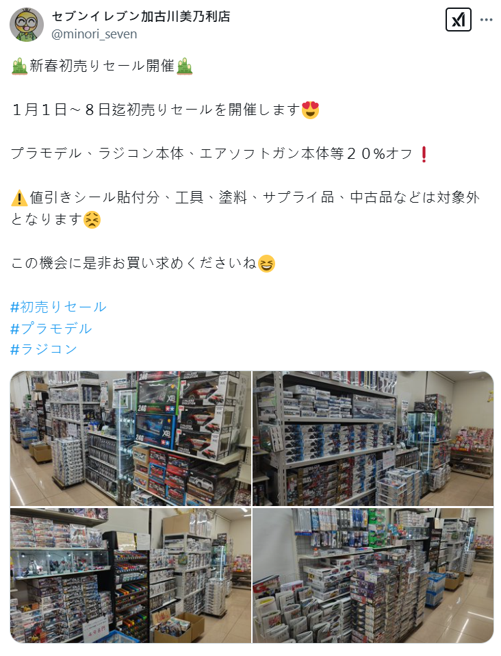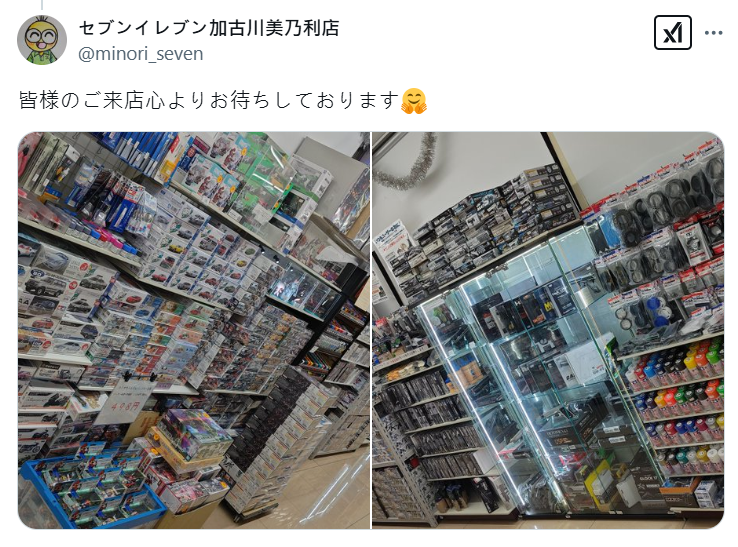 也有網友分享,在兵庫縣的加古川市也有一家 7-11,整間店除了有超商該的東西,還有大量的鋼普拉模型、遙控車跟模型工具,幾乎是一間模型店了,也讓不少人嘖嘖稱奇。