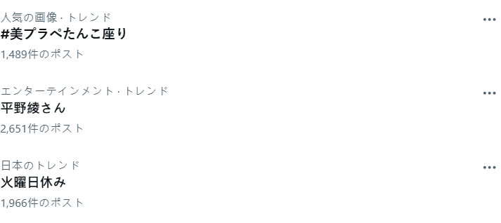 ▼ 播出後日本 X 趨勢也出現平野綾的關鍵字熱搜。