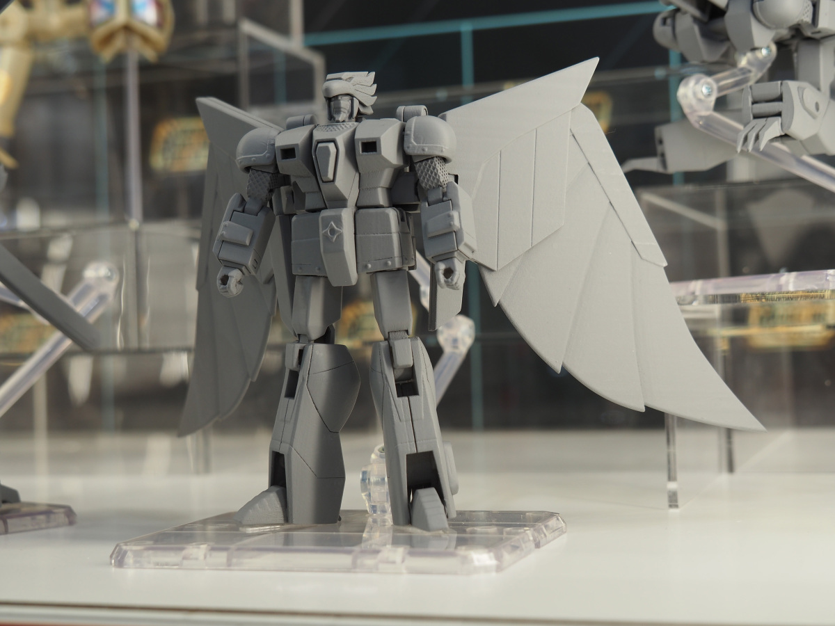 於今年 01 月開播的《創聖機械天使》系列續作動畫《想星機械天使 Myth of Emotions》,劇中的主角機「想星機械天使」也在 SMP 火速立體化,目前展出的灰模除了具備精密的細節造型外,也預告了將具備 SIGEL、TIR、FEOH 三形態的變形合體機構。