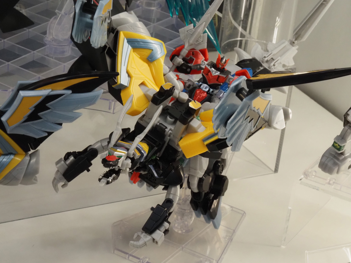 SMP 最新勇者系列商品將推出《黃金勇者》,此次展出了黃金劍士.德蘭、黃金機龍、黃金忍者.空影三架新機原型,其中一般販售的黃金劍士.德蘭、黃金機龍具備再現「黃金德蘭」的變形機構,而空影則預計於 PB 限定販售,能與黃金德蘭合體再現「大空合體.天空黃金德蘭」。
