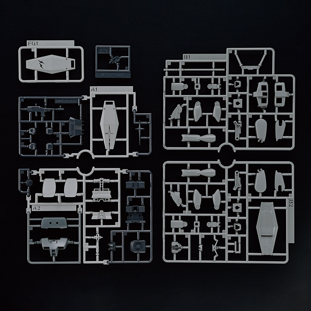 合作商品「BMC 1/144 RX78FRGMT GUNDAM」基於過去推出的一般版修改而來,運用 2024 年現代的分色分件技術重現 1980 年推出的初代鋼普拉商品「1/144 鋼彈」,就連包裝盒繪都徹底復刻。整體造型保留舊套件那獨特樸實、彷彿動畫中作畫的造型,並重新設計了整體零件分割、組裝結構,讓套件能夠以塑膠成型色重現機體色彩。