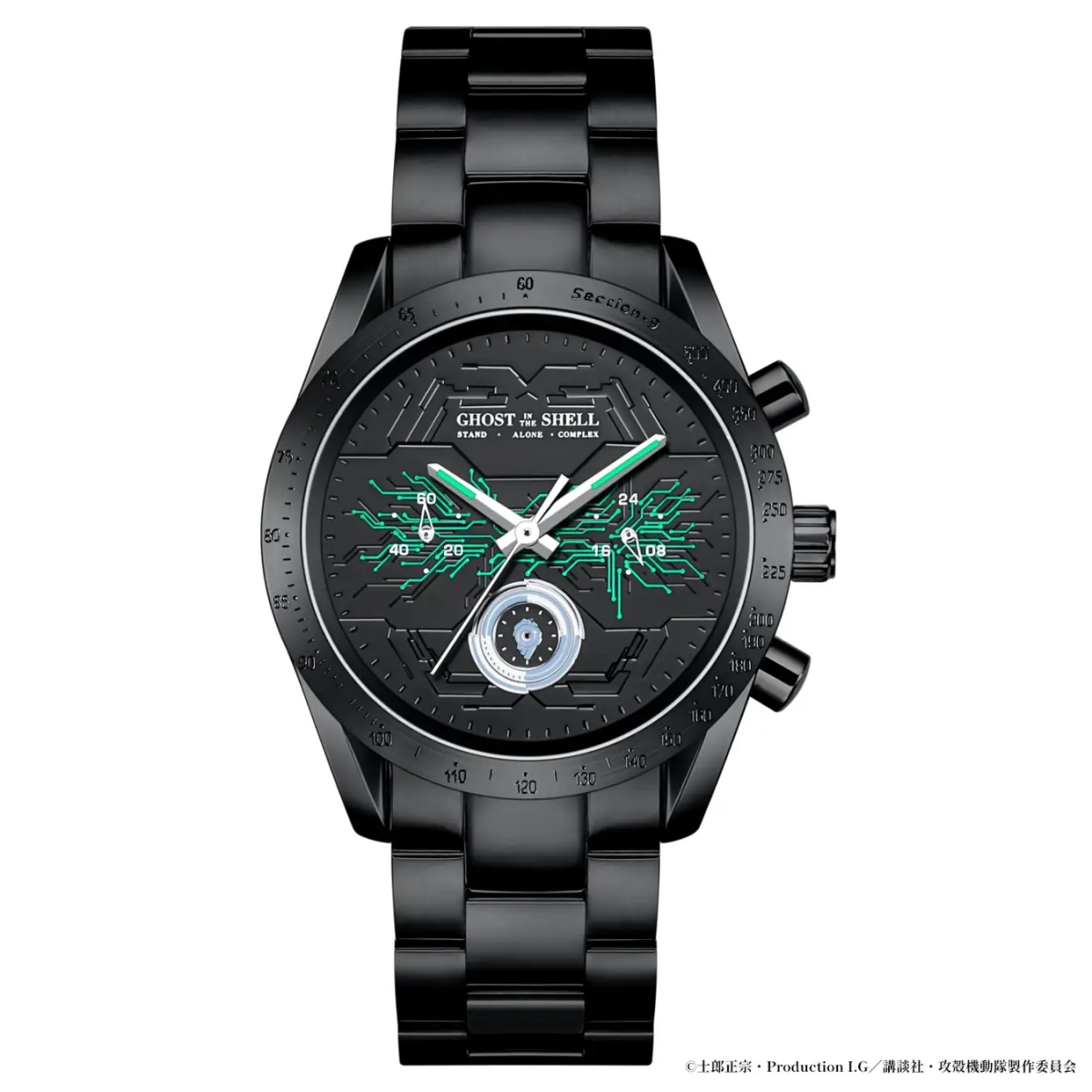 以全面漆黑的外觀為主體,錶盤背景可以看到以具有科技色彩的電路板形象製作而成,且具有蓄光的功能,在黑夜中也能看得清楚,並在六點鐘處小錶盤中配置著公安九課的標誌。