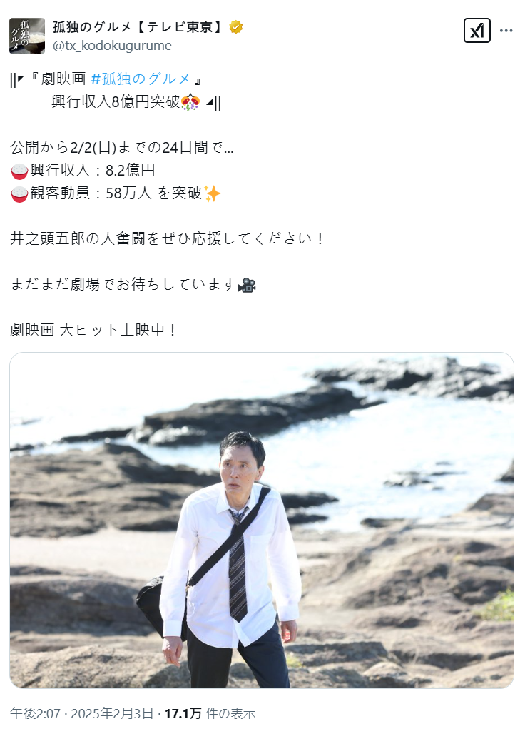 上映一個月後也開出不錯票房,果然五郎吃美食的魅力不同凡響。昨日 ( 2/11 ) 采昌亞洲電影世界於粉絲專頁貼出代理消息,台灣確定將於 2025 年 3 月 14 日上映,讓不少粉絲感到驚喜,這部片確定能在台灣看到了。