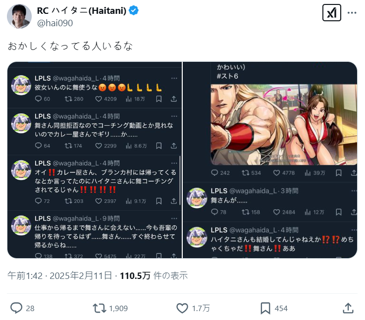 還被電競選手友人RC ハイタニ截圖喊說 : 「這裡有個變得很奇怪的人啊。」,這真的病得可不輕阿 www。