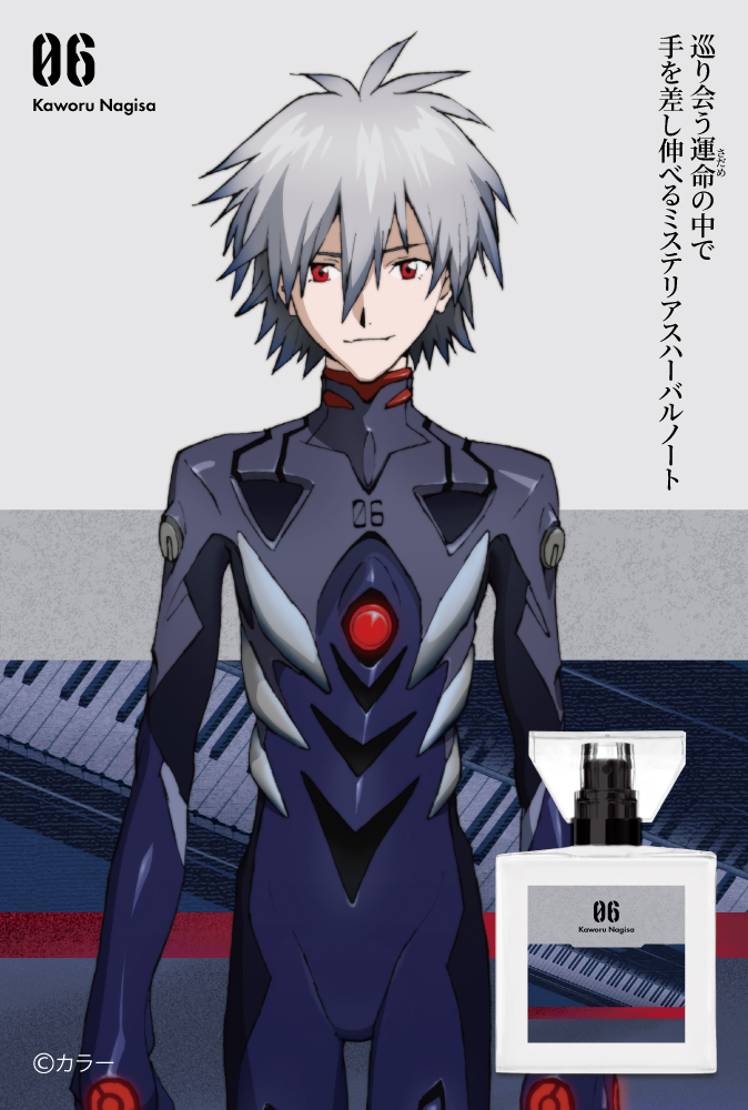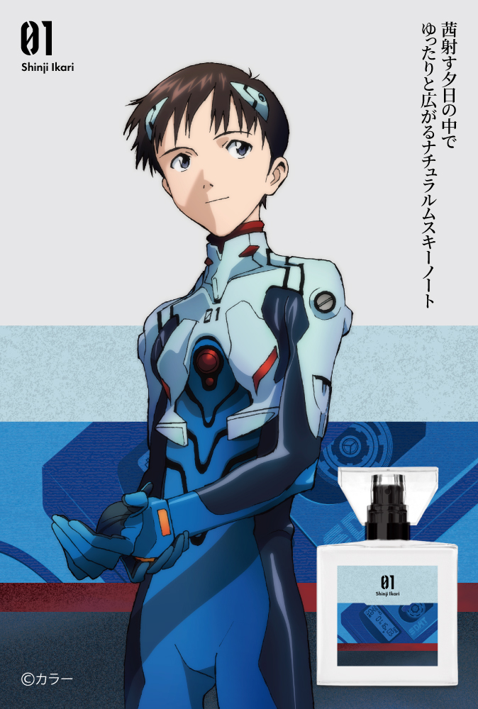 這次選擇包含 : 碇真嗣、綾波零、明日香、渚薰與真希波五位,分別以各別的特色打造專屬的香氣,瓶身插圖也都選擇各自的代表物品,並配上乘坐的 EVA 數字,即使沒有人物插圖也可以輕鬆辨識。
