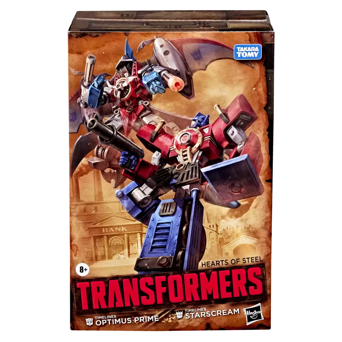 本次的變形金剛玩具是根據2006年的漫畫《變形金剛:鋼鐵之心(The Transformers: Hearts of Steel)》為題打造。這些來自賽博坦星的變形金剛們一樣進行著博派與狂派的爭鬥,不過他們在地球上甦醒的時機點並不是我們熟悉的現代,而是18、19世紀左右的工業革命時期;基於此時代背景人類的技術與科技,不論博派還是狂派的載具模式都是蒸氣龐克風格的火車頭、雙翼飛機等,相當有意思。