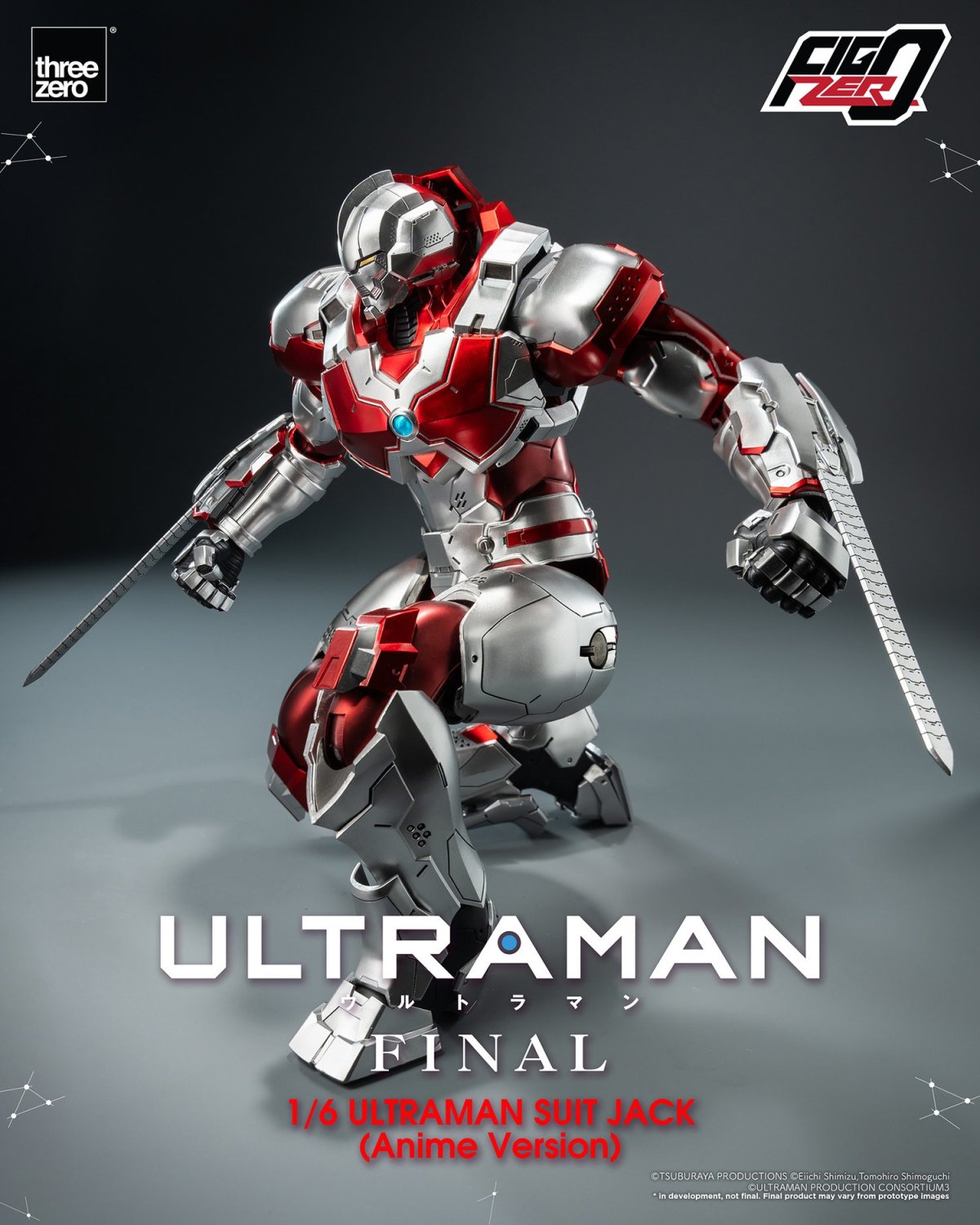 由香港玩具品牌threezero所推出的 1/6 比例可動人偶系列『FigZero』系列,發表了出自動畫版《ULTRAMAN》的最新商品「1/6超人力霸王戰鬥服傑克 (Anime Version)」預計於 2025 年第四季發售的消息。