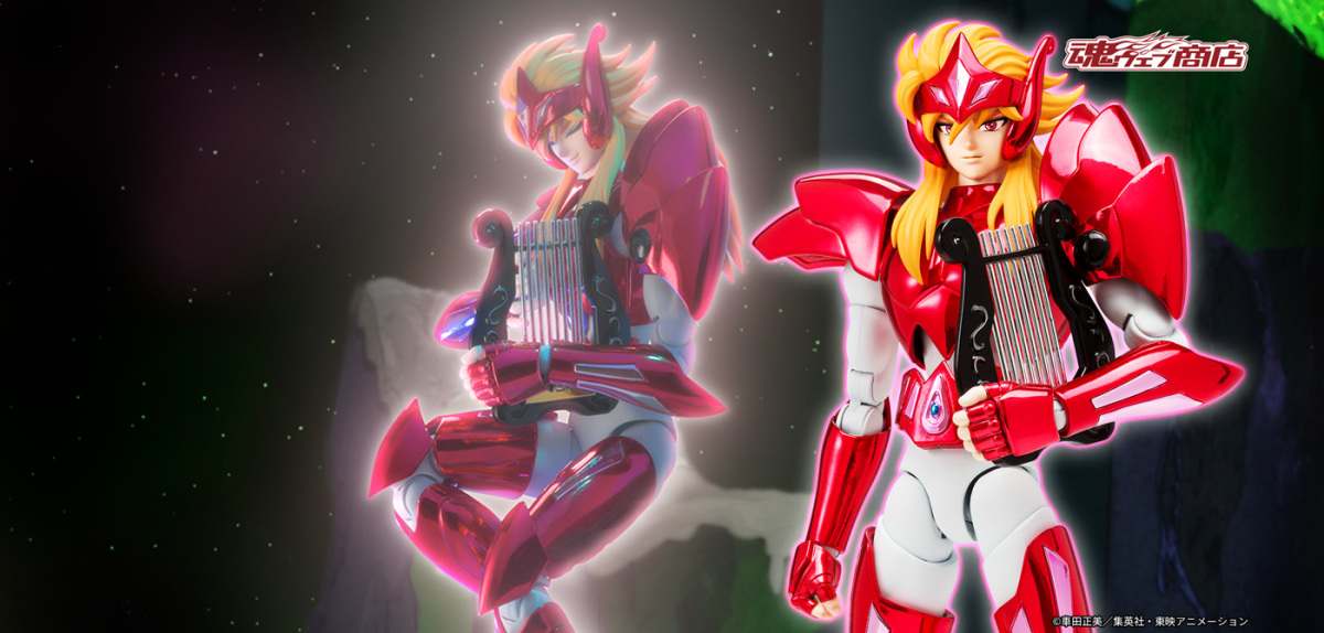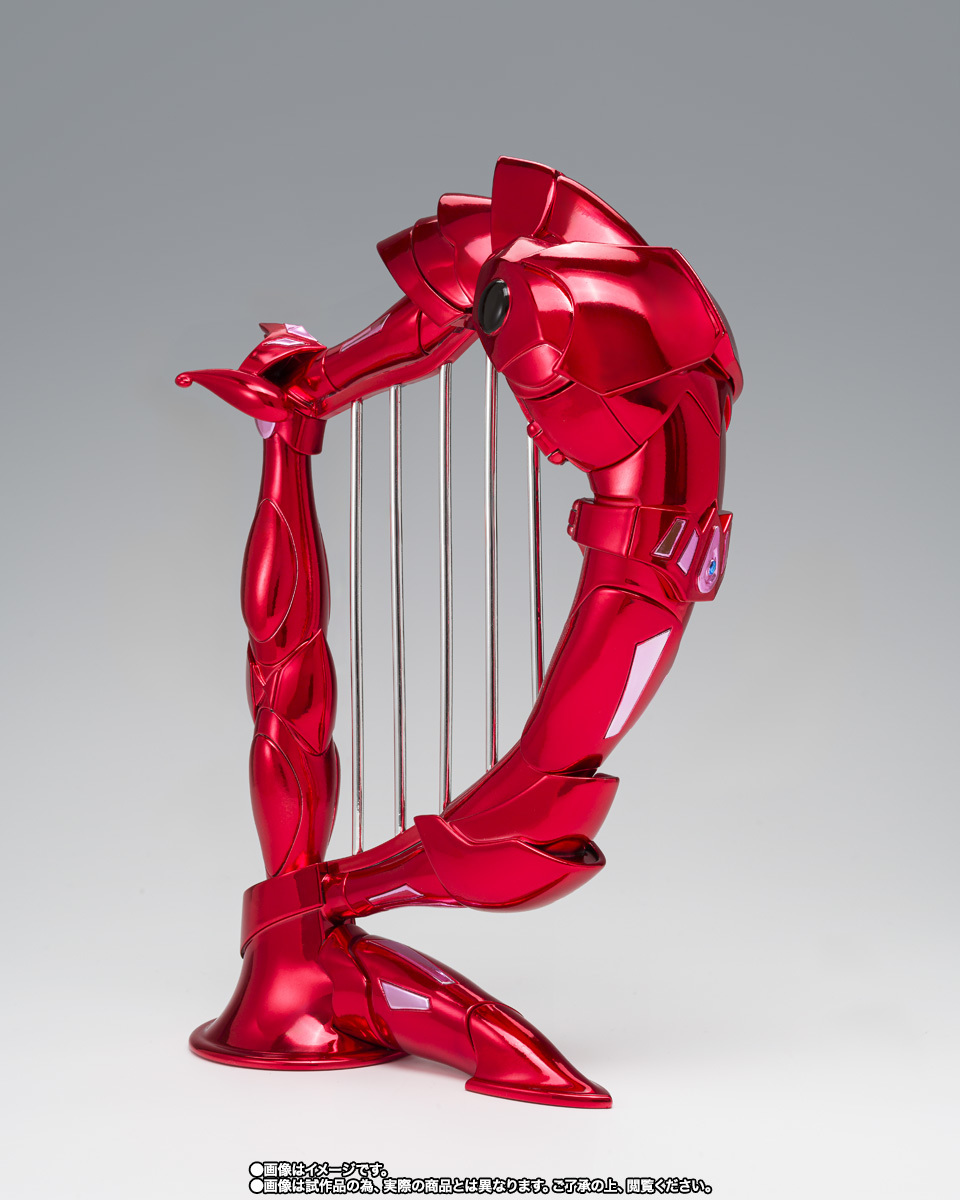 北歐亞斯格特篇的第七彈商品「聖闘士聖衣神話EX 瑤光星 米梅」可動人偶,尺寸約高 17 公分,再現米梅橘紅色的長髮,一身醒目的聖衣採用鍍膜呈現出閃亮光澤,打造出金屬般的厚重感。附有包含無表情、笑臉、露齒臉、閉眼臉、戰鬥吶喊臉等豐富的替換臉部表情零件,還有多款可互換的手勢零件,搭配瑤光七弦琴武器,賞玩劇中的生動姿態!與系列相同,也可以組裝還原聖衣型態,化身為豎琴造型!