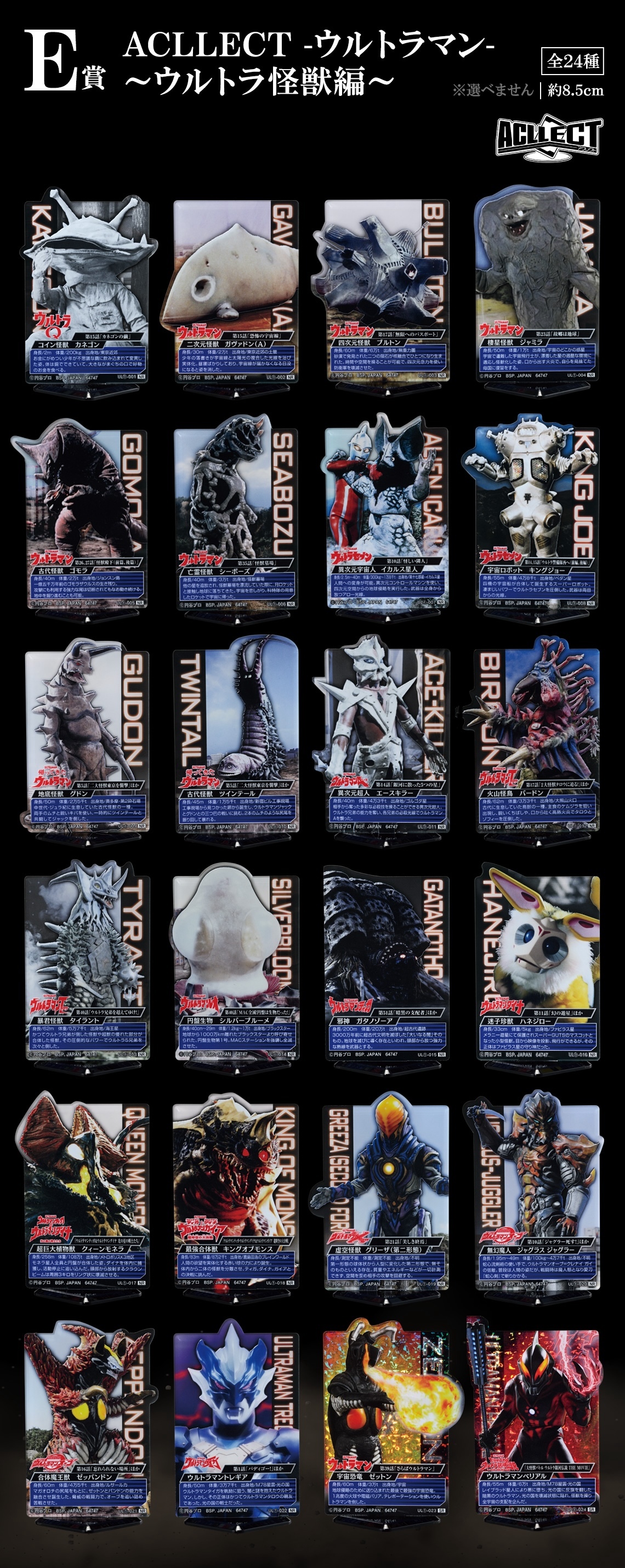 C~F賞則分別為印有各種經典怪獸的主題茶杯、透明海報、ACLLECT系列壓克力立牌、以及怪獸頭雕造型磁鐵,提供了各位滿滿的怪獸主題周邊賞品,喜歡超人力霸王的各位玩具人千萬不要錯過!