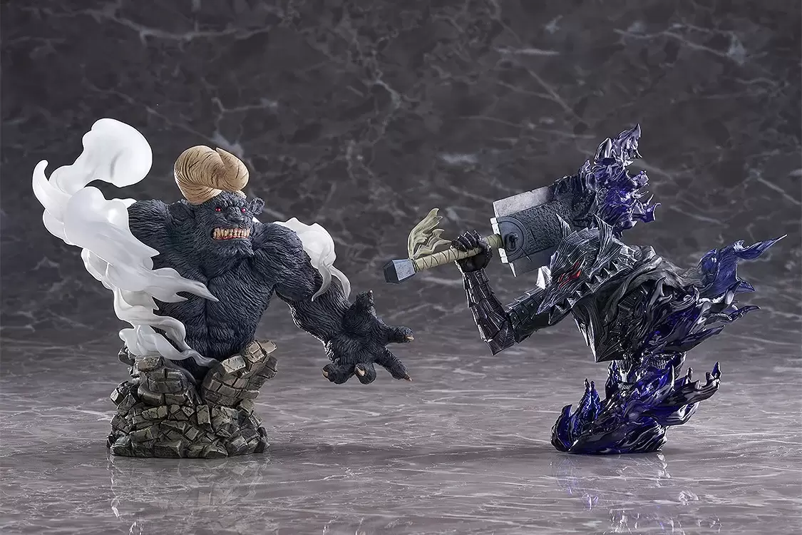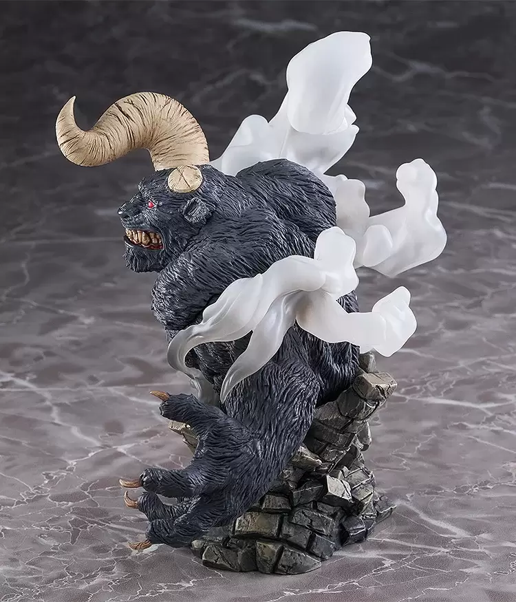 「索特(狂戰士鎧甲)胸像模型」由「STUDIO 我畫」監修,尺寸約高 14.5 公分,徹底再現變身成使徒形態的獸姿模樣,細膩再現全身覆蓋著黑色獸毛、頭上頂著巨大彎曲犄角;從身體上升的煙霧採用透明零件表現,搭配裂開的石牆與巨大的手爪,傳達魄力臨場感!