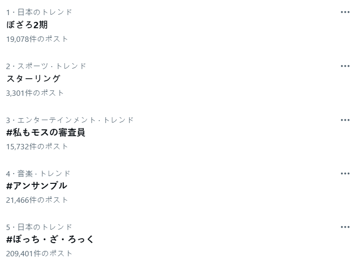 ▼ 一公布也立刻讓《孤獨搖滾!》第二季登上日本 X 趨勢熱搜排行首位。