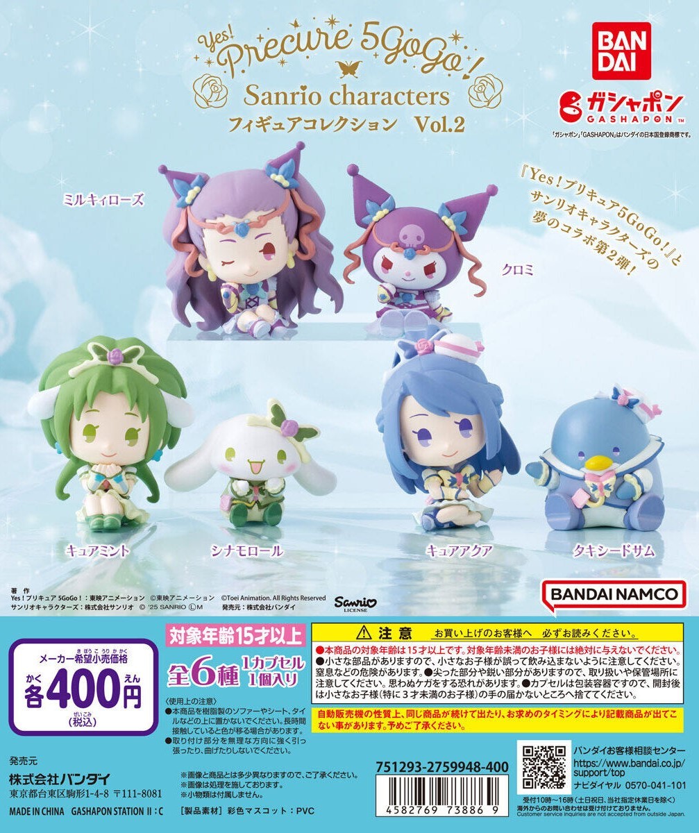 日本萬代 BANDAI 玩具公司轉蛋事業部 GASHAPON 推出經典動畫《Yes! 光之美少女5》與超人氣的三麗鷗明星聯名的最新主題商品:「Yes! 光之美少女5 × 三麗鷗明星 特別合作角色收藏Vol.2」轉蛋,參考售價為每轉 400 日圓,預計於 2025 年 02 月發售!