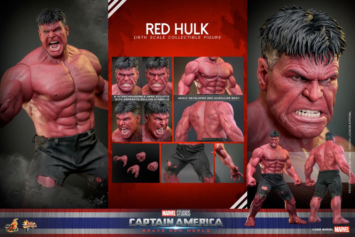 世界知名的香港玩具廠牌Hot Toys繼先前的「美國隊長」後,今(27)日正式公開了另一件電影《美國隊長:無畏新世界》主題的新商品——「紅浩克」(Red Hulk),參考售價為2,490港幣,預計於2026年第一至第二季發貨!