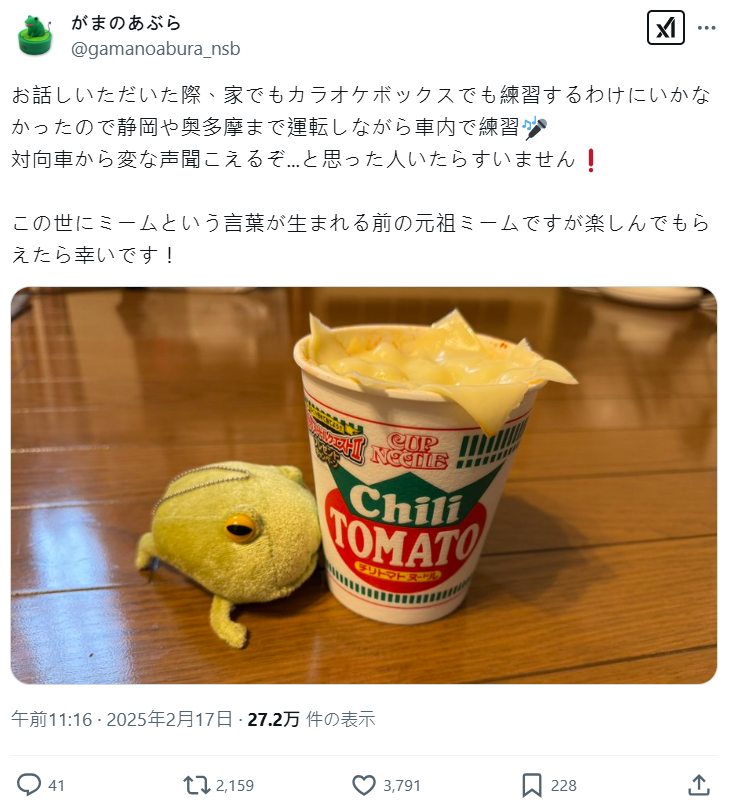 這次的廣告,連當年名場面實況的原聲「がまの油」也特別回歸重新錄音,根據他在 X 上的發文,他甚至在車內練習了好幾遍才錄製完成,力求還原當年的熱血嗓音。