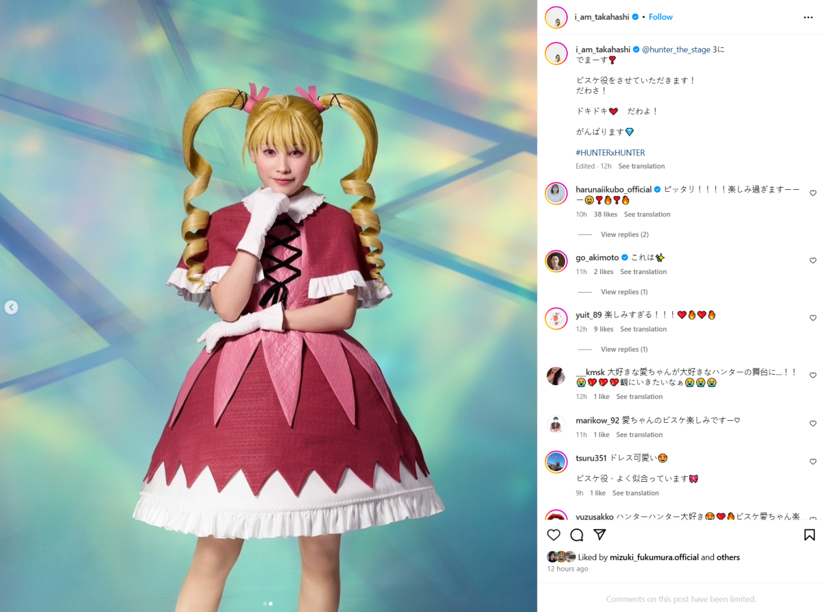 這次的造型一公開,馬上在她的個人 Instagram 上掀起熱烈討論,粉絲紛紛留言:「太棒了吧!」、「根本神還原,超期待!」、「也太適合了吧!」、「金髮雙馬尾好可愛~!」與「等等,愛醬也會變身成肌肉猛女嗎?」,高橋愛也表示自己會全力以赴,演出最棒的舞台效果。