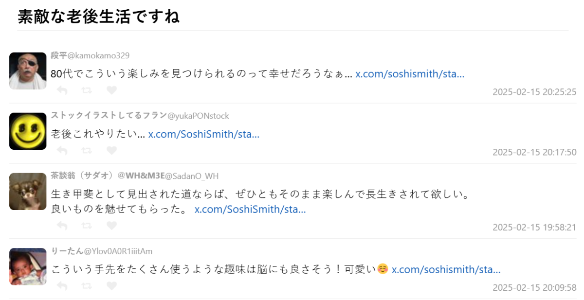 這則貼文短短兩三天就累積超過 20 萬的讚,不少網友讚賞推主母親真的很不容易,這年紀還可以玩出興趣。