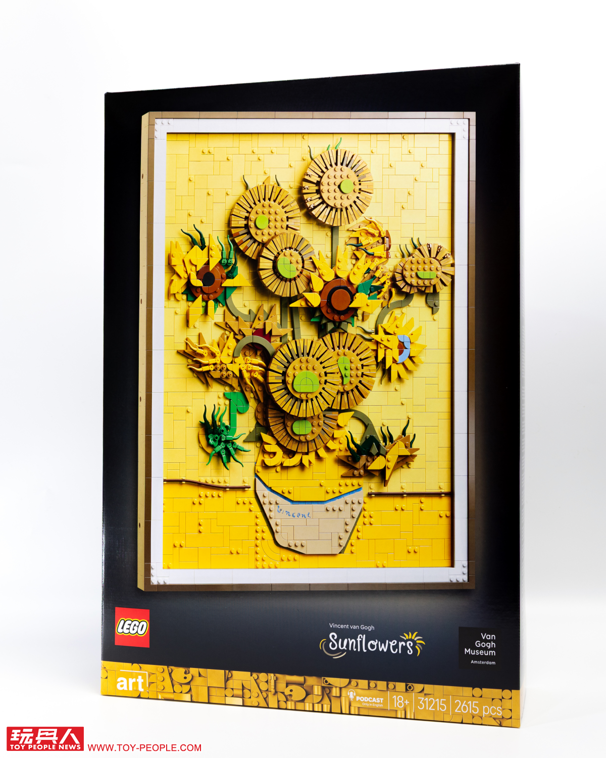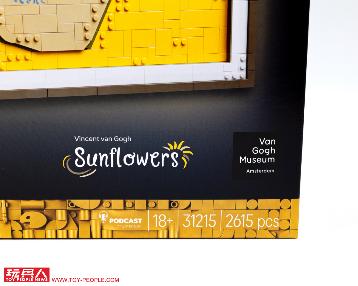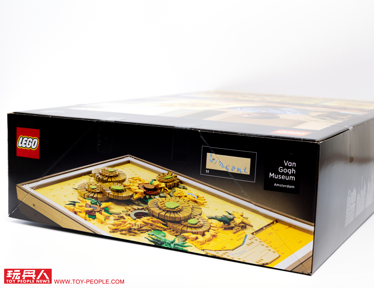 ▼ 包裝外盒正面近乎滿版印製了這次的堆砌主角畫作〈向日葵〉,同時還能看到Sunflowers的畫作名稱跟LEGO、梵谷博物館(Van Gogh Museum)的LOGO。
