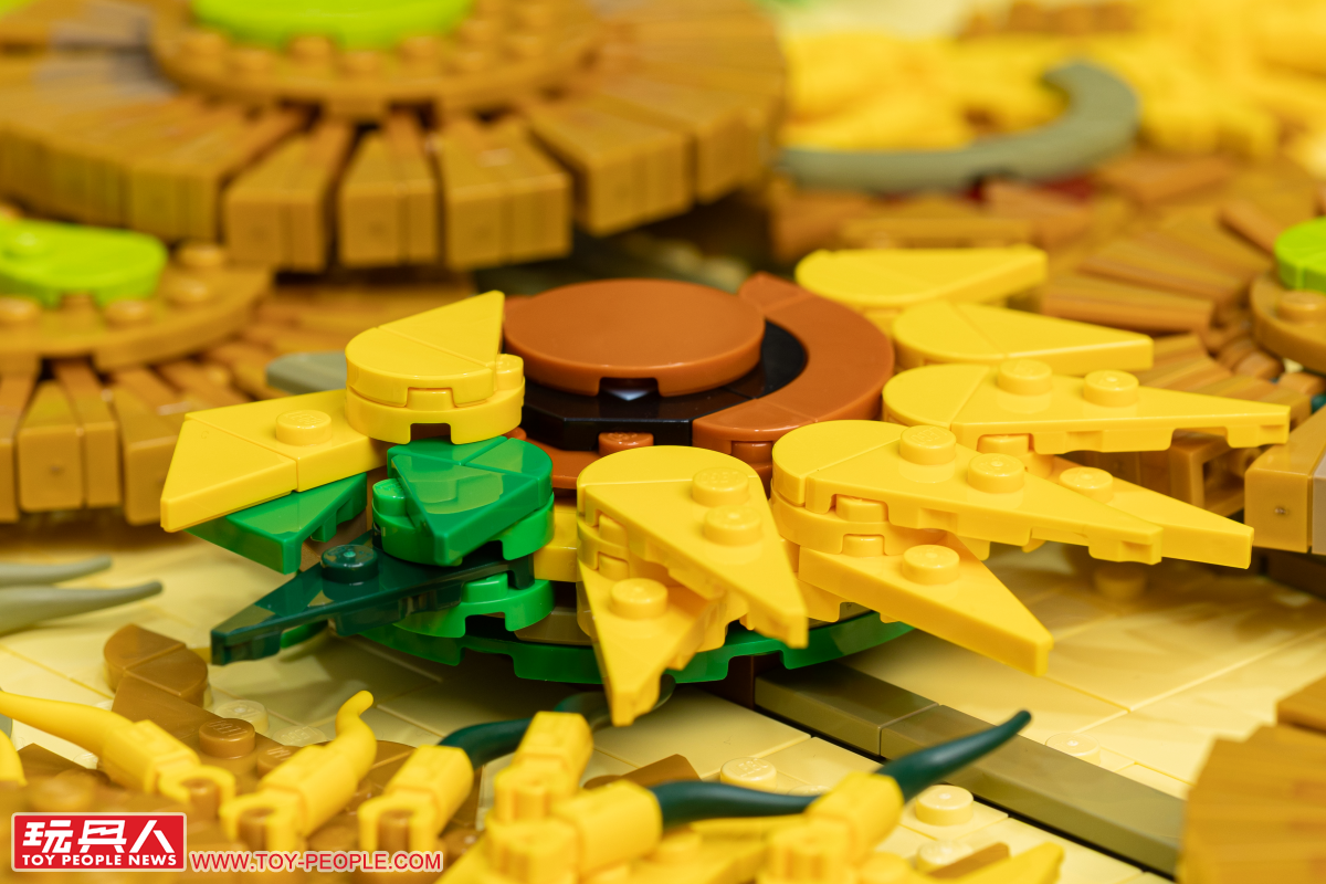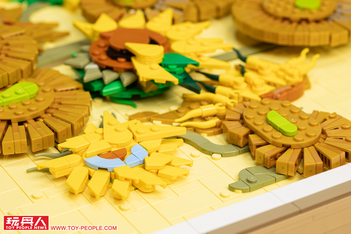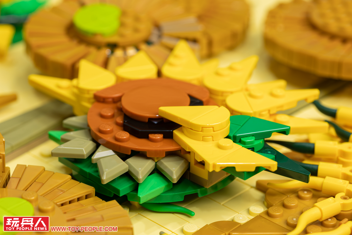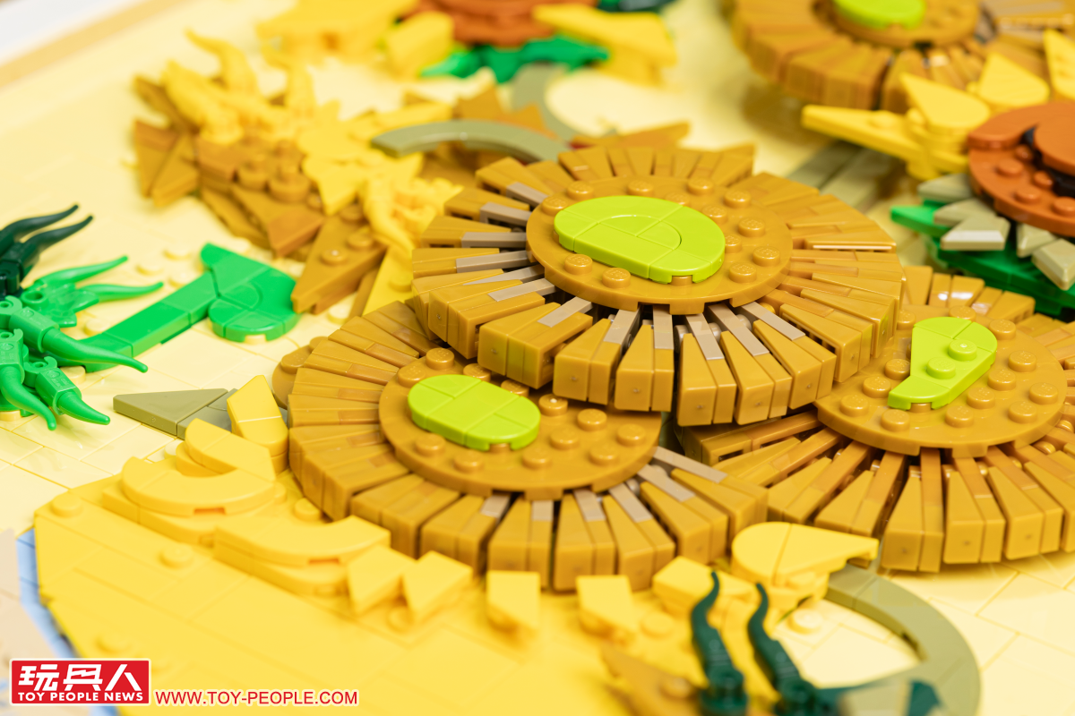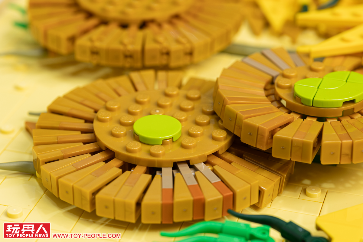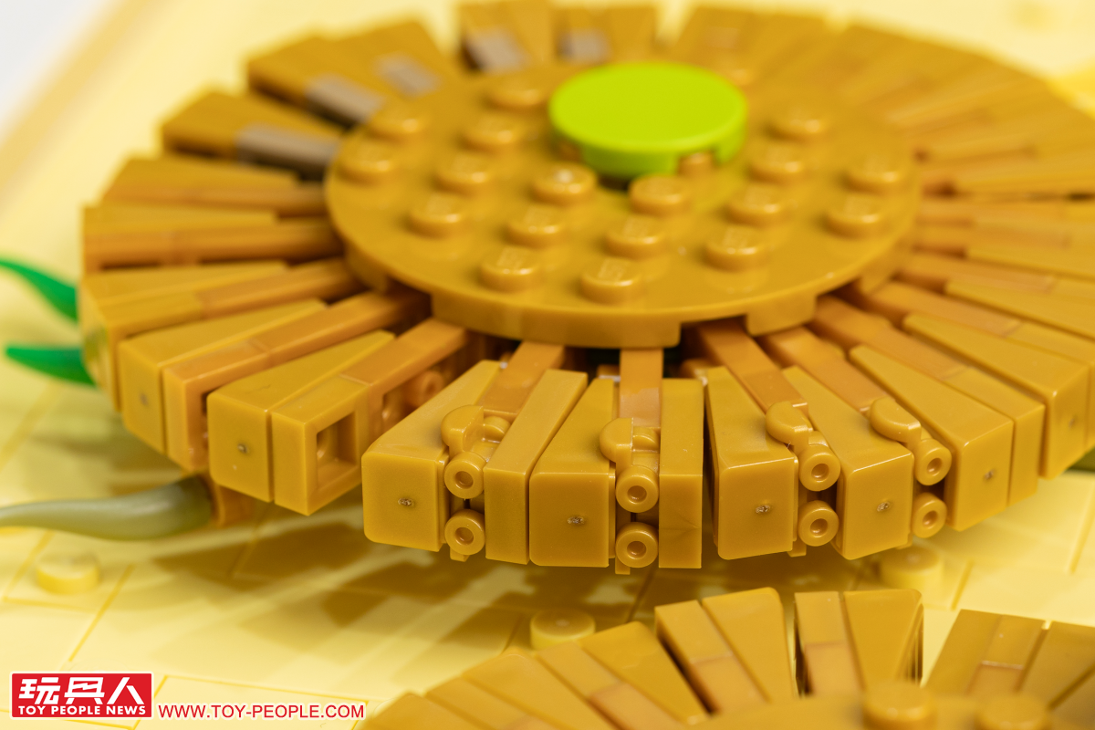 ▼ 接著一起來看看樂高〈向日葵〉的各處細節吧~即便是用類似方式堆砌出來的金色向日葵,花瓣的構成方式也很多樣;更不用說本作還有利用其它拼搭方式呈現出來的向日葵了,在視覺效果上真的十分有意思。