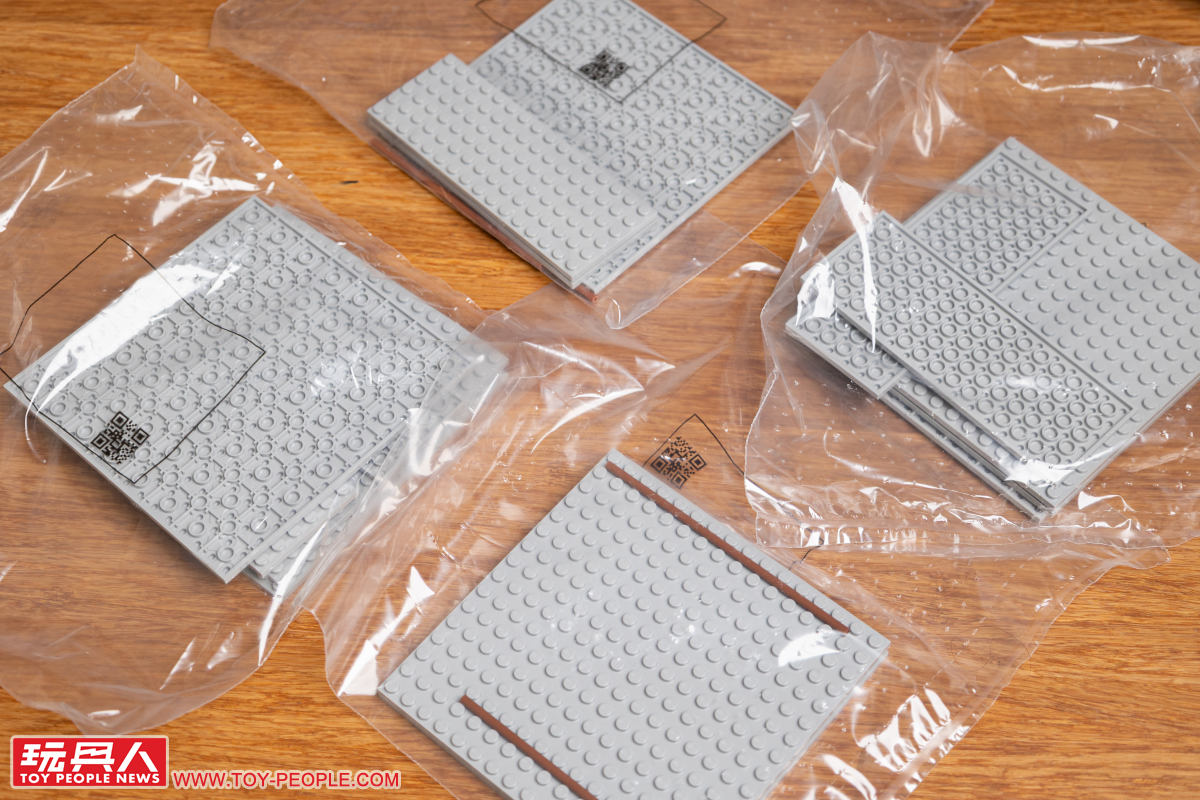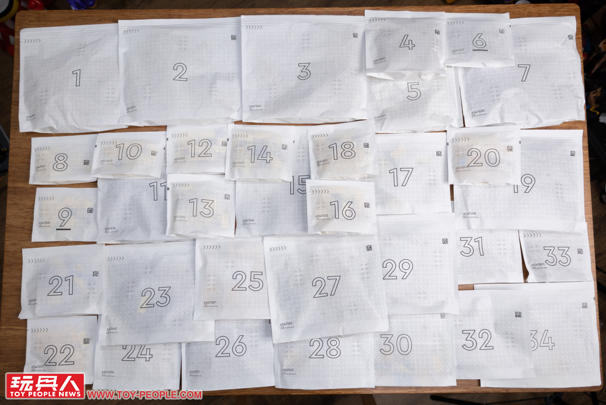 ▼ 果然,打開來之後是滿滿的紙袋零件包。這次一共2615片的零件包含了34袋編號零件包以及4袋無編號的灰色底版。