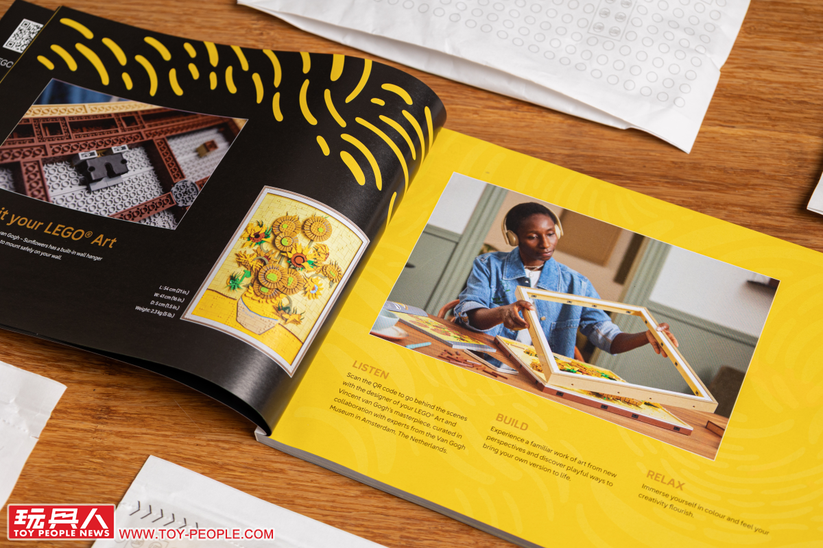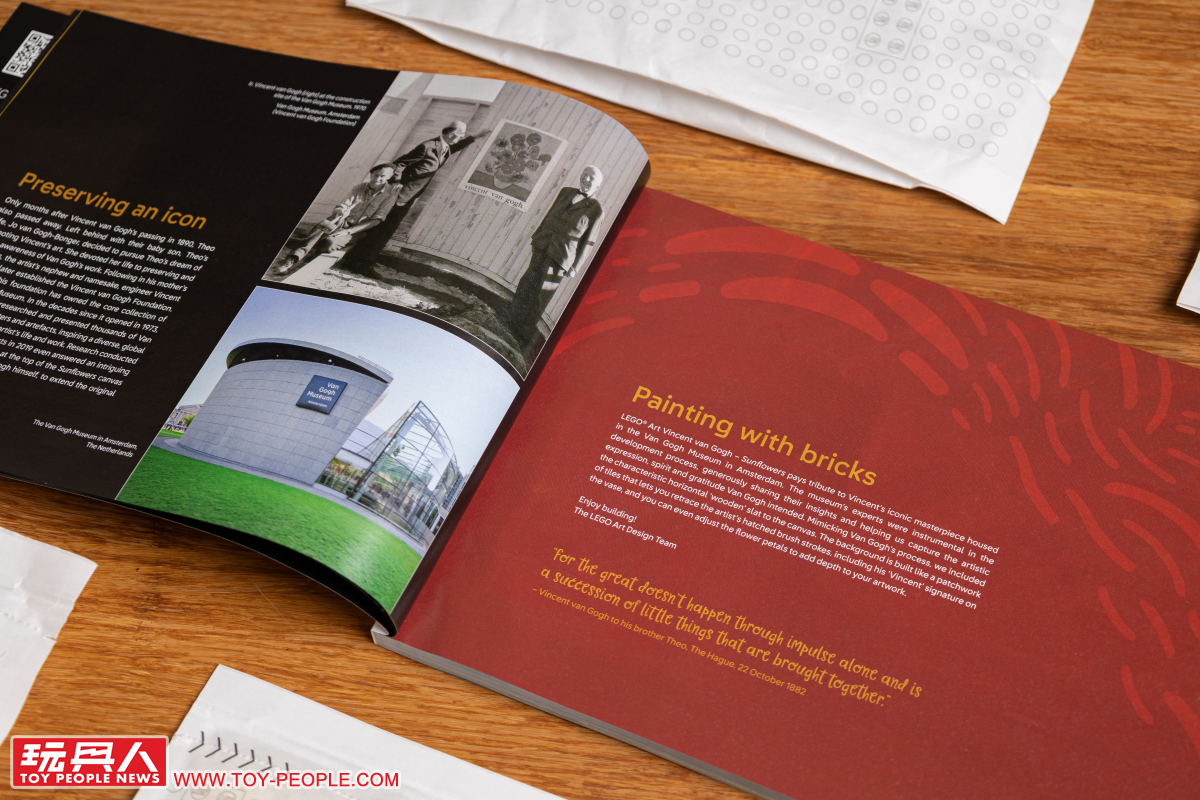▼ 其它內容還有梵谷基金會的誕生緣由、梵谷對弟弟Theo說的話語,以及樂高設計師團隊對於這款「31215 文森·梵谷 -〈向日葵〉」的設計概念、可以邊拼邊聽的podcast內容。