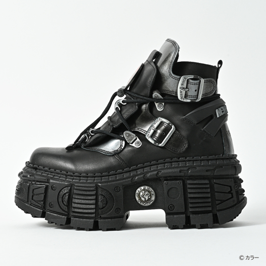 除了有著各款的 Logo 配置在鞋舌的鐵牌上,也都採用對應的色系呈現。並採用「NEW ROCK」品牌人氣的厚底鞋款式,跟高約 9 公分,復古且充滿視覺效果的設計絕對是女性 EVA 粉絲不容錯過的。