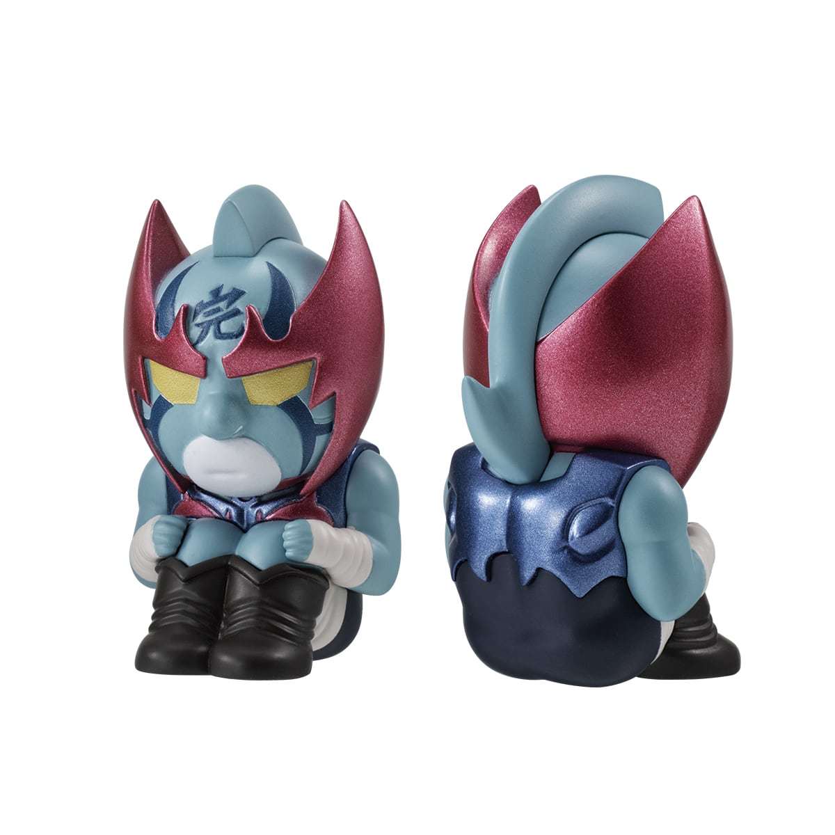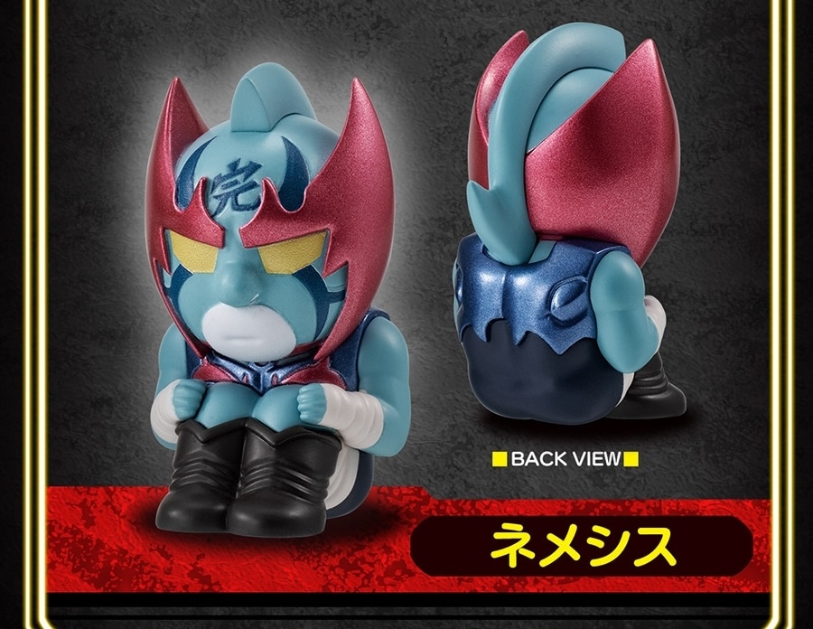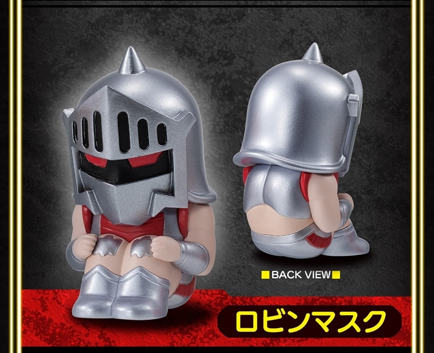 本次的「苦苦等待 金肉人」將作品中的幾位人氣角色製作成約4公分高的角色模型,收錄金肉人、泰利人、羅賓假面、戰爭人以及納美希斯五種款式,為五位超人們製作了等待中系列標誌性的抱腿動態,在約兩頭身的比例下還原角色們的造型細節,臉上的文字、鎧甲的金屬質感都毫不馬虎的再現,一字排開看起來既強大又可愛!