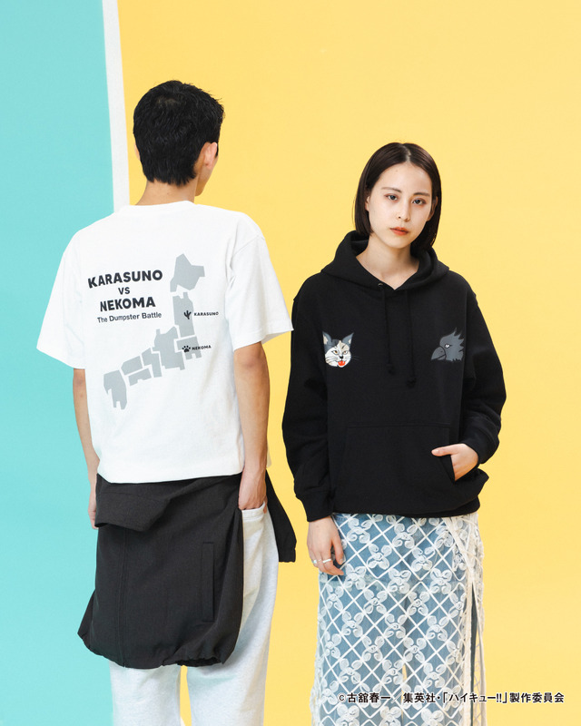 這次結合 MANGART BEAMS 的潮流設計風格,將烏野高中、音駒高中隊服的元素加入設計,並透過人物卡牌的樣式特別設計短 T,呈現結合《劇場版排球少年!! 垃圾場的決戰》元素的服裝系列。