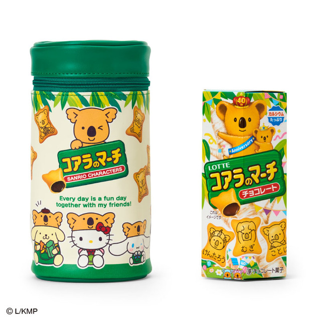 可站立的筆袋設計,搭配三麗鷗角色與小熊餅乾的聯名圖案,尺寸為 9cm × 3cm × 9cm,內附 LOTTE「小熊餅乾」1 盒。