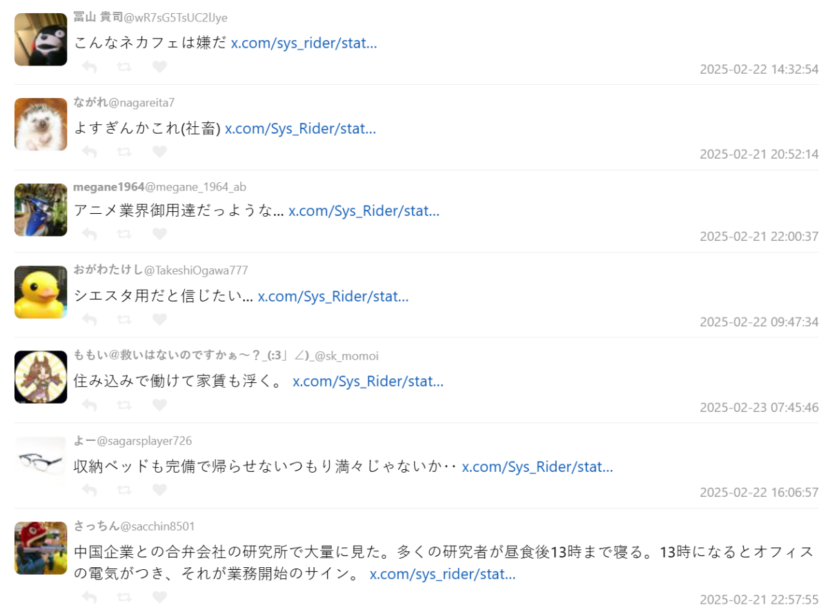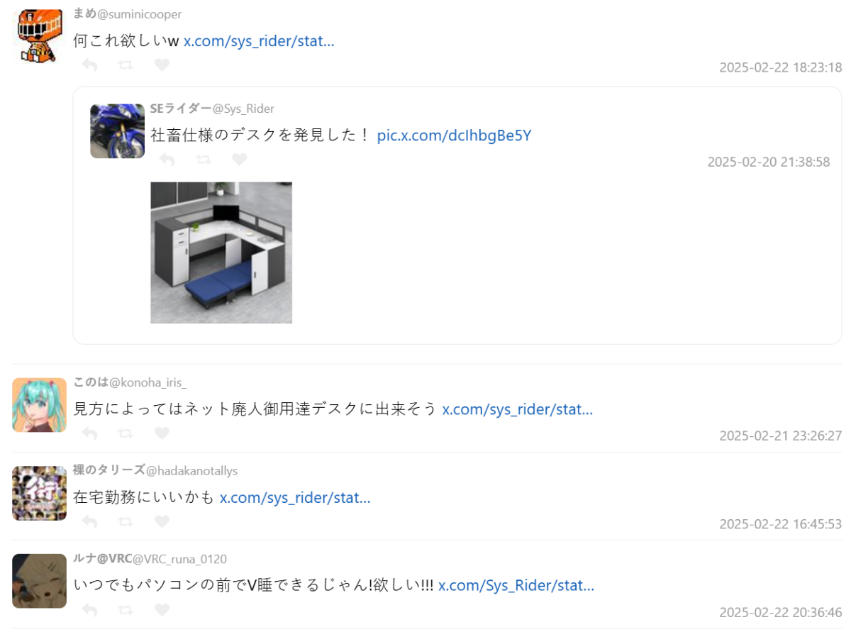 有網友認為這樣搞得像是網咖,不過真的很適合長時間待在公司的社畜朋友。亦有人認為這適合動畫業界工作的同仁,甚至也表示曾在中國企業辦公室中過類似的,當然就是給員工休息方便使用。