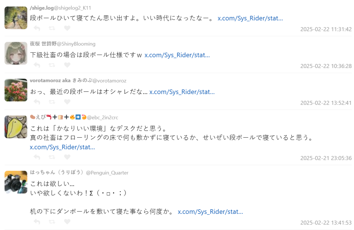 有睡過公司的社畜網友表示,這比自己過去睡在紙箱上好多了,下等的社畜可能就只有紙箱,這種有床的辦公桌應該是給高階人士的 XD。