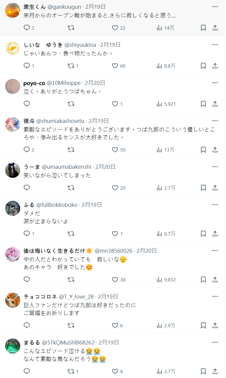 即使是巨人球迷的網友,都表示對燕九郎的幽默感非常熱愛,真的難以想像,馬上三月就要開幕戰了,居然要迎來無法跟燕九郎一起享受棒球的時光,讓人不由得悲從中來。