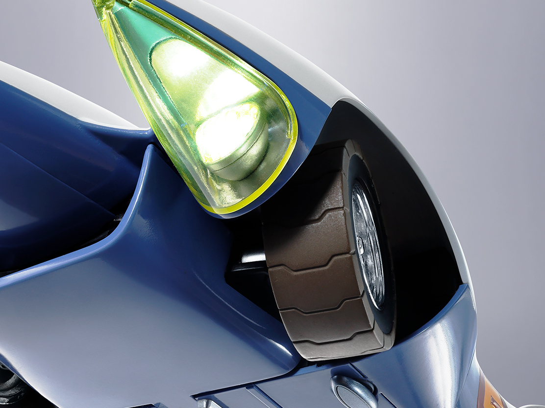 本次的超合金音速號採用1/18比例打造,全長約27公分,以壓鑄及塑膠複合材質還原音速號流線的造型,並巧妙的透過內建的機關和豐富的配件還原A~G七大特殊功能——為A按鈕自動千斤頂(AUTO JACK)、B按鈕的履帶輪胎(BELT TIRE)、C按鈕的切割裝置(CUTTER)、D按鈕的防護罩(DEFENCER)、E按鈕車頭LED發光功能的夜視裝置(EVENING EYE)、F按鈕可以淺水的的青蛙裝置(FROGGER)以及G按鈕可以藏在車頭收納箱的燕子號,提供超豐富的把玩體驗!