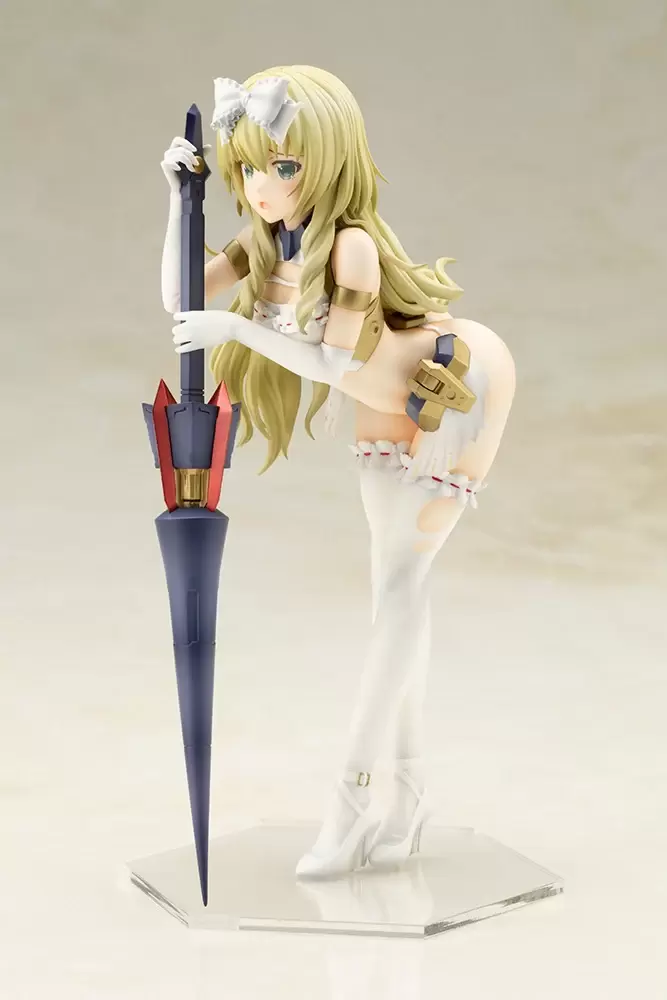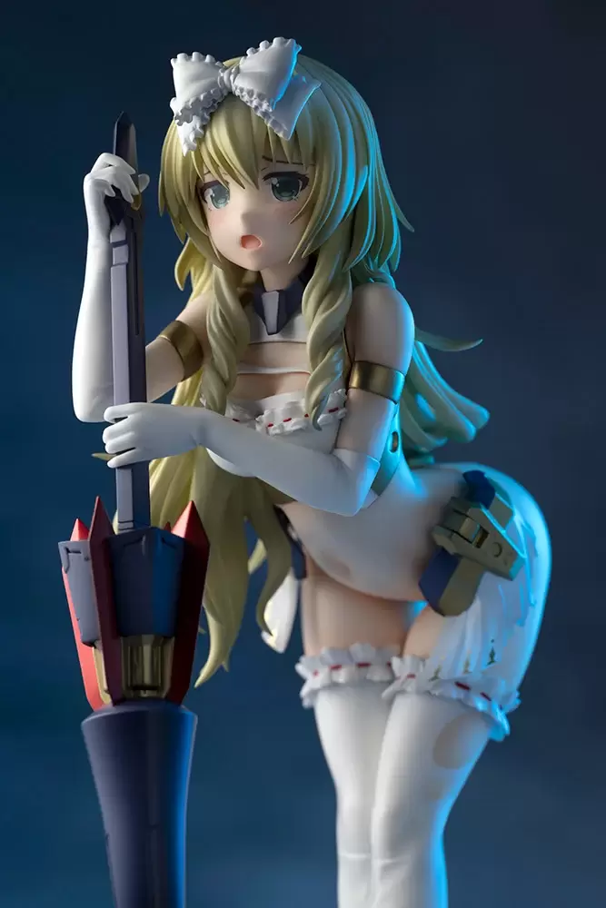 這次推出的「突伽I」採用全高約 21.5 公分的 PVC 完成品規格製作,相較組裝模型版更能展現駒都英二筆下角色的魅力。倚靠在長槍上的突伽I有著楚楚可憐的姿態,並實現了組裝模型版無法呈現的完整關節造型、連內衣都裂開的爆衣狀態。