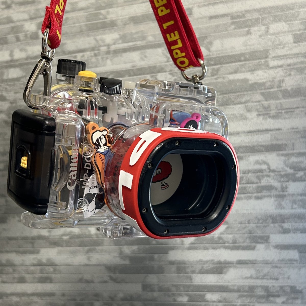 從他分享的照片可以看到,雖然這個防水殼仍保留著單眼相機的外觀,但內部的空間足夠寬敞,可以放入各種小物,甚至稍微大一點的周邊商品也能輕鬆容納。
