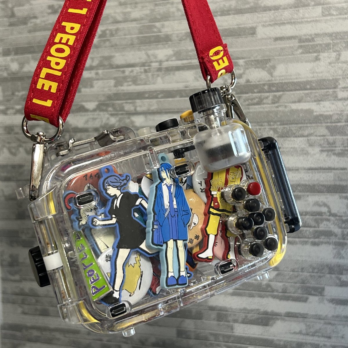 發表這項創意的是 X 網友 スメシ(シャリ)(@people_shu),他在跳蚤市場無意間發現了一個相機用的防水殼,本來只是覺得造型有趣,沒想到隨即靈光一閃,想到了一種全新的用途——將它當作裝飾配件,收納自己喜愛的樂團周邊商品。