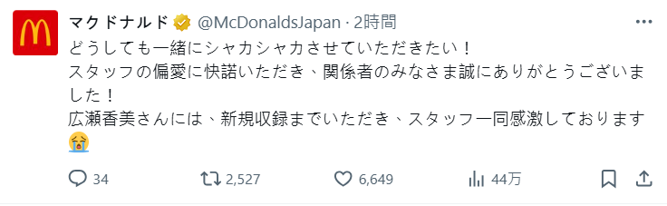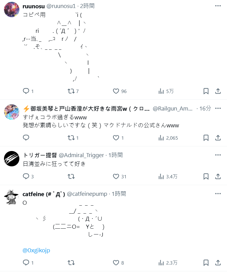 只能說現在日本麥當勞的社群操作,真的是一次比一次還要狂阿,不只找 Vtuber 或各種聯名合作,連這些網路老梗都翻出來玩,意想不到的鬼點子可說是層出不窮,看來日買真的是有老 nico 民在裡面工作呢 XD。