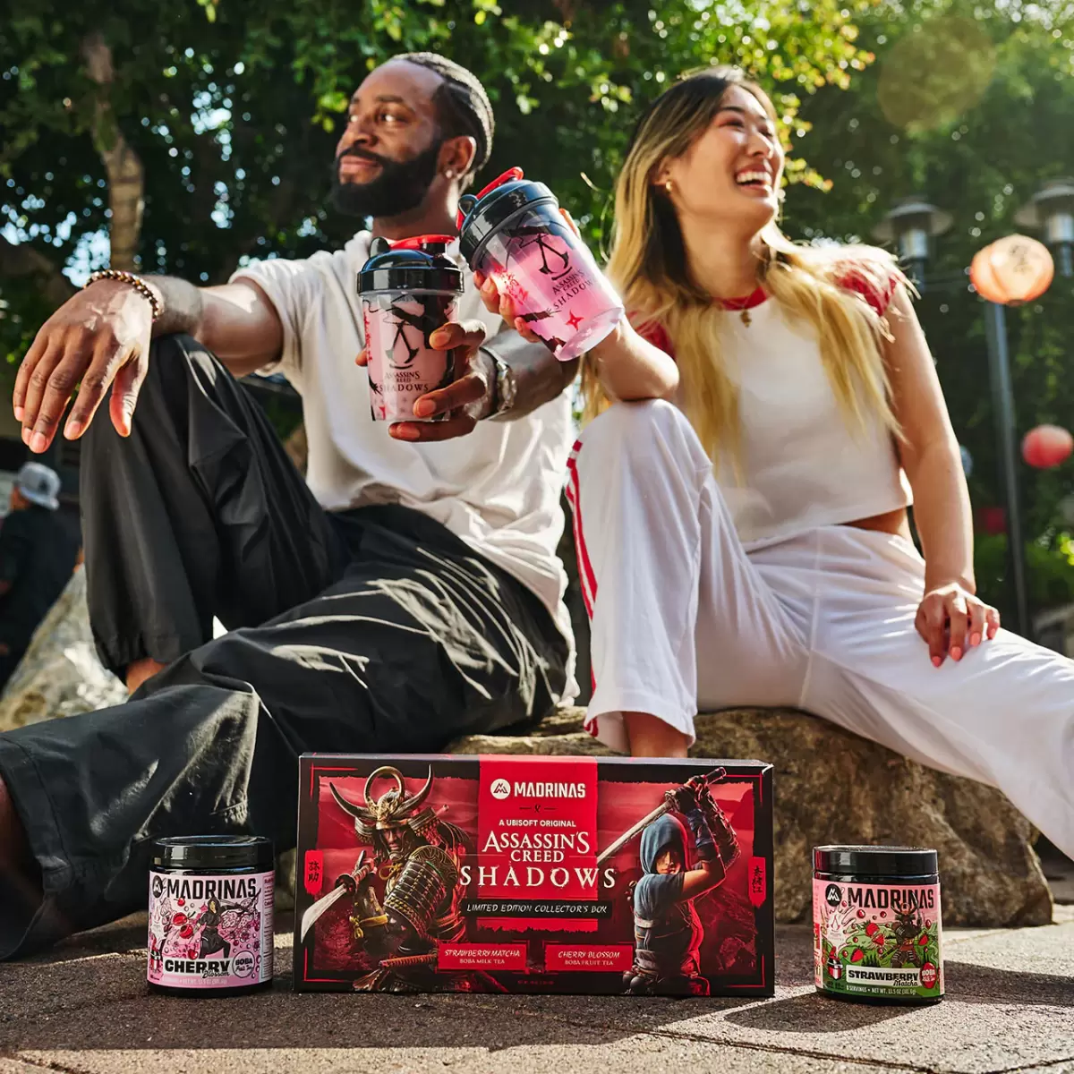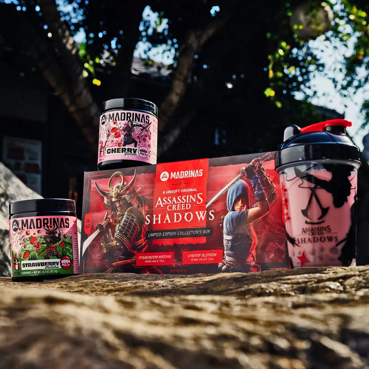 《刺客教條:暗影者》與 MADRINAS 推出的內容物,是以「櫻花粉」做為主打,其內容物分別是 1 罐草莓抹茶奶茶粉、1 罐櫻花水果茶粉,以及聯名搖搖杯。而在育碧官方的文宣上,也寫著「精通珍珠奶茶的藝術」,似乎意味著可以利用 MADRINAS 的即溶粉,來製作珍珠奶茶。