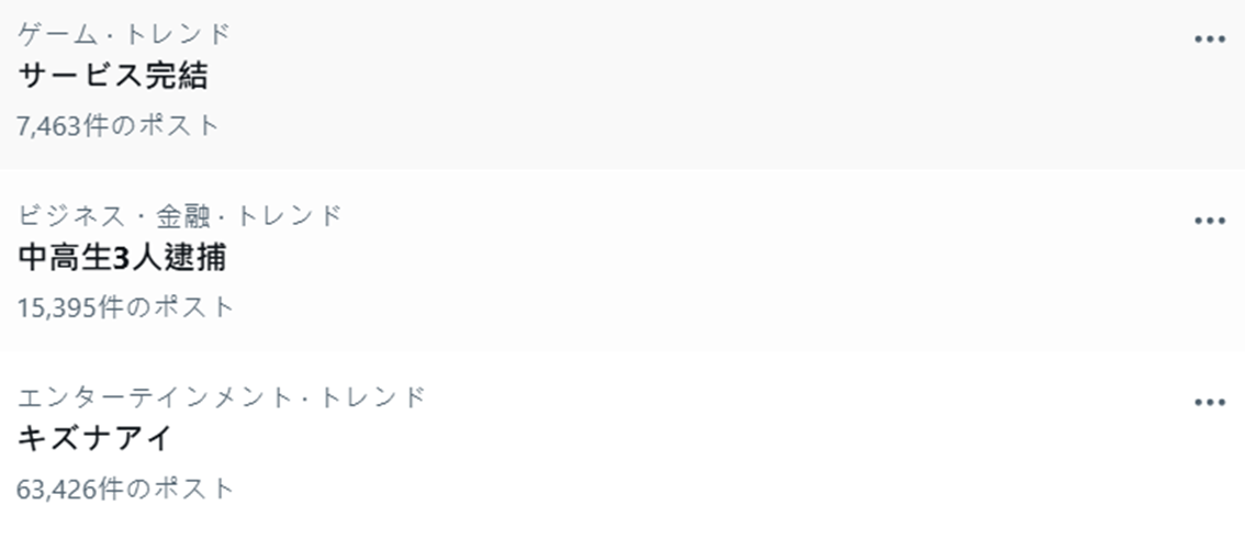 ▼ 「中高生3人逮捕」出現在今日日本 X 趨勢。