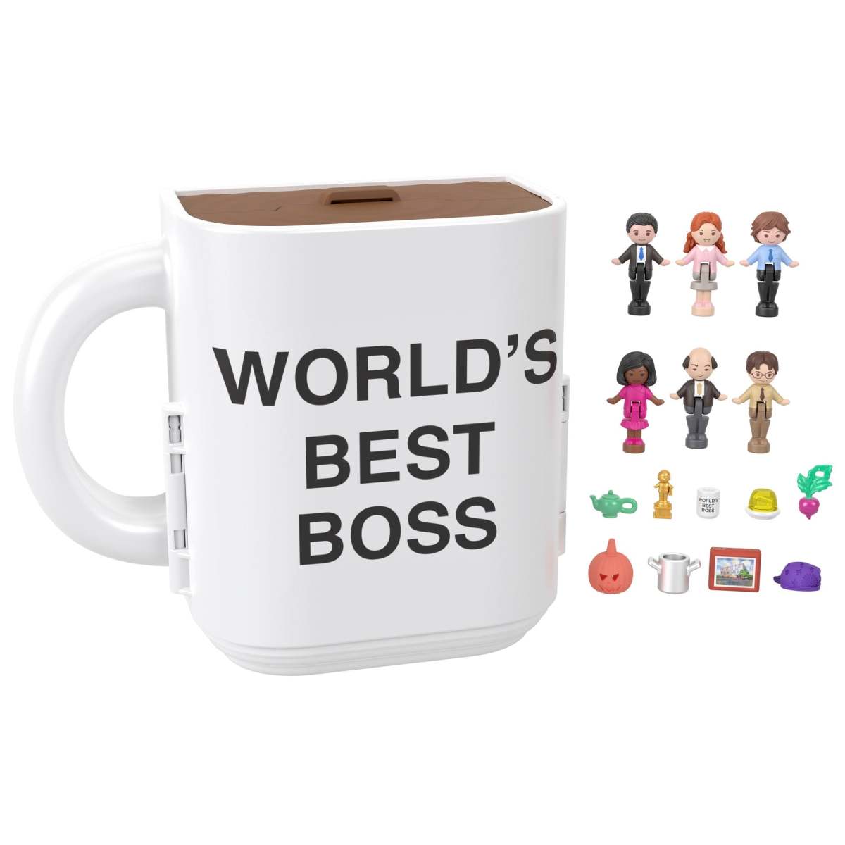 本次的「Polly Pocket 口袋芭比 x 我們的辦公室」迷你角色場景組外觀上採用了Dunder Mifflin斯克蘭頓區域經理麥克·史考特(Michael Scott)自己買的印有「WORLD’S BEST BOSS」字樣的馬克杯造型,將劇中Dunder Mifflin斯克蘭頓分公司辦公室的幾個區域:玄關、麥克的辦公室、會議室、辦公區及休憩室縮小重新排列放入可折疊的場景組中,並以貼紙印刷重現百葉窗、牆上由潘(Pam)繪製的畫等各種場景細節,而上方的「Dunder Mifflin Paper Company, Inc.」字樣還可以翻轉變換成「Michael Scott Paper Company」,重現第五季中麥可另起爐灶的場面!