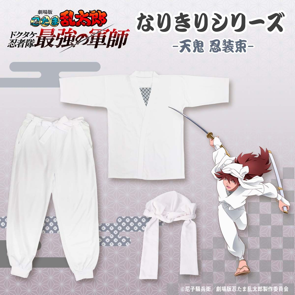 包含上衣、長褲與頭飾,完整呈現天鬼在劇中所穿的白色忍者服裝。