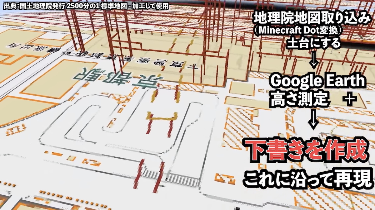 影片中,他展示了如何透過地圖導入技術來建立地基,並利用 Google Earth 測量高度來確保建築比例的準確性,最後依照這些數據逐步搭建出完整的車站。這樣嚴謹的製作方式,也難怪作品能夠達到如此驚人的水準。