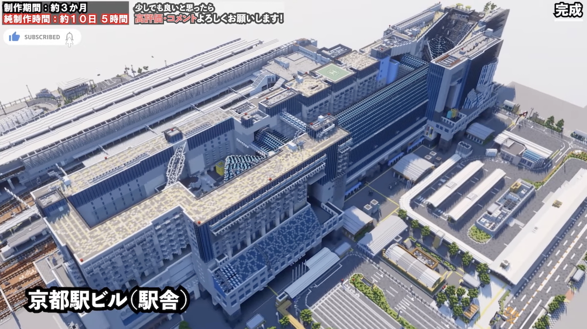 值得一提的是,作者還在自己的 YouTube 頻道「とろぼ制建 -マイクラ再現建築-」 上分享了這座京都車站的製作過程。