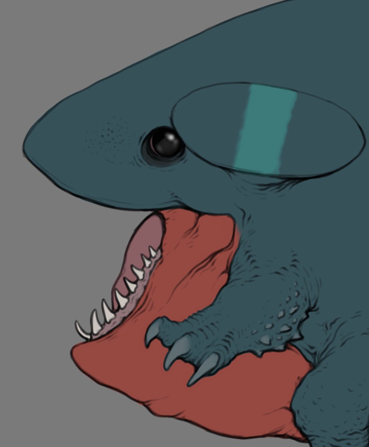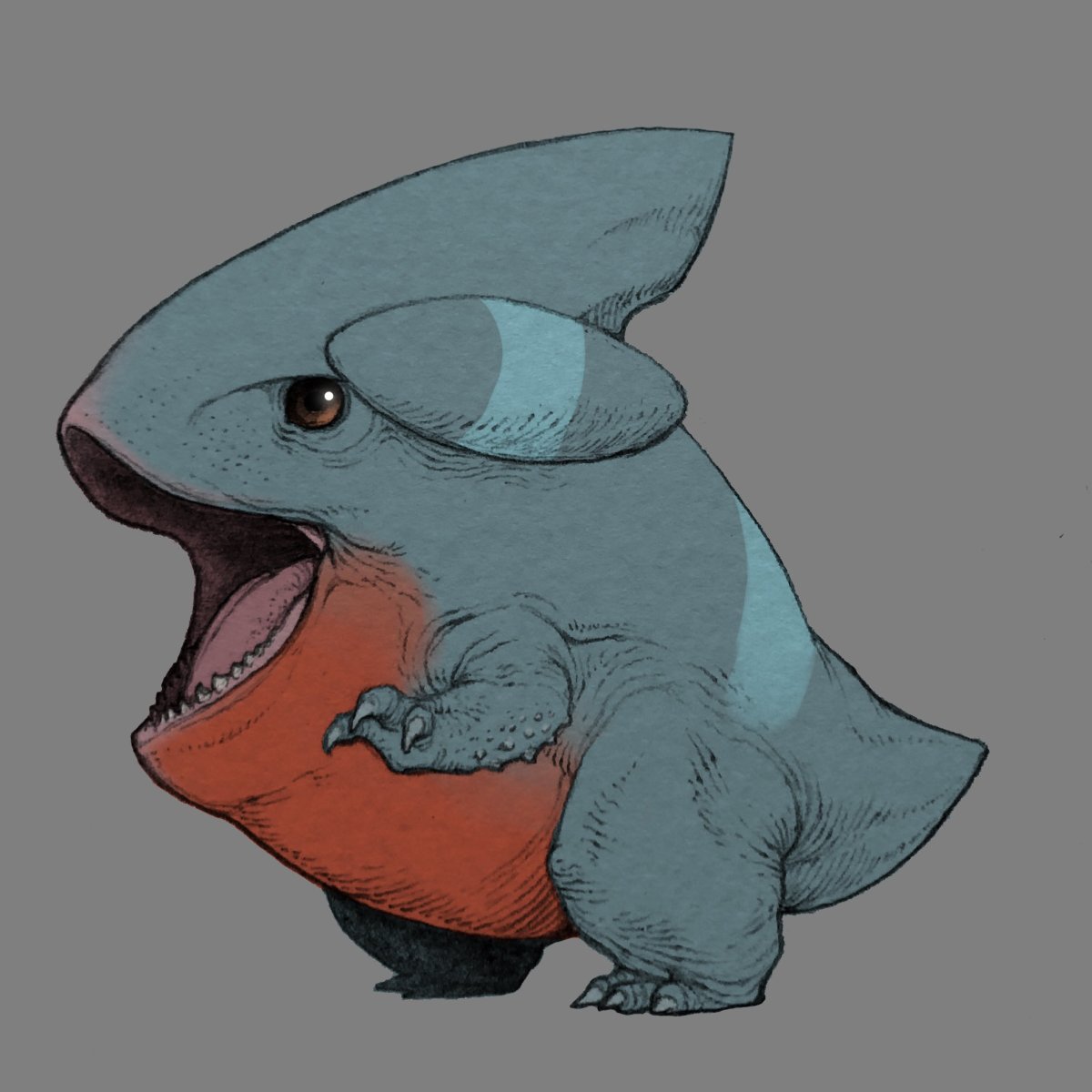這幅作品出自插畫家「nao70shark」(@nao70shark1)之手,他以動物與奇幻生物為主要創作題材,擅長將生物繪製得栩栩如生。這次,他以「感覺畫技突然變強了」為由,重新詮釋了圓陸鯊,結果畫出的成品充滿真實感,讓人不寒而慄。