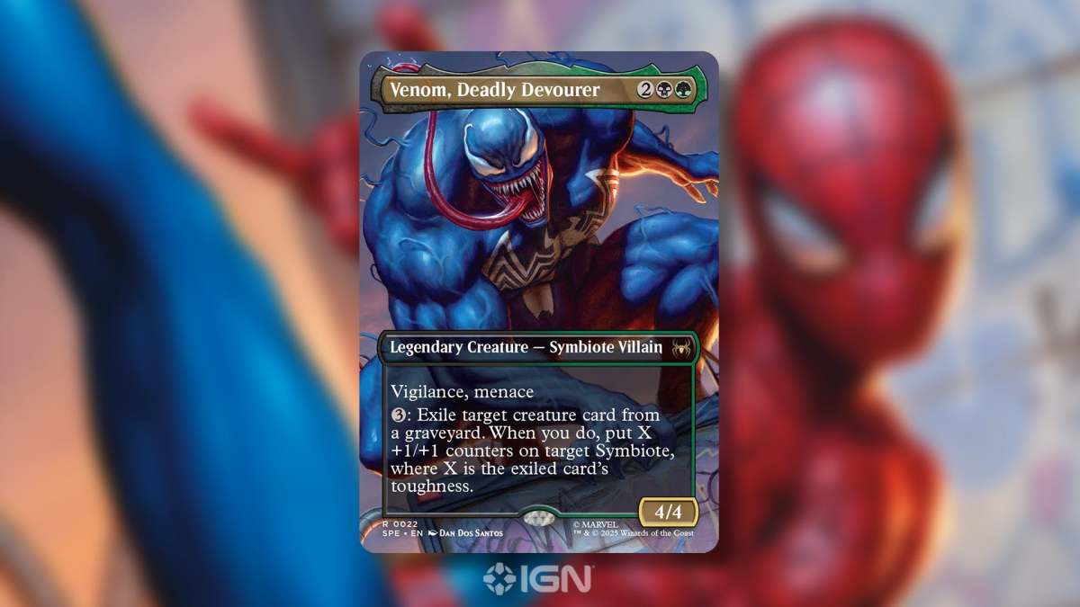 既然是以「蜘蛛宇宙」為主的系列套牌,理所當然地是在這附卡牌上完整呈現其世界觀角色,因此除了眾所皆知的「蜘蛛人」彼得·帕克外,也包含另一名「蜘蛛人」邁爾斯·莫拉雷斯、關·史黛西...等角色,而反派方面則也包含了綠惡魔、猛毒等。威世智(Wizards of the Coast)官方也率先曝光六張卡面繪製。