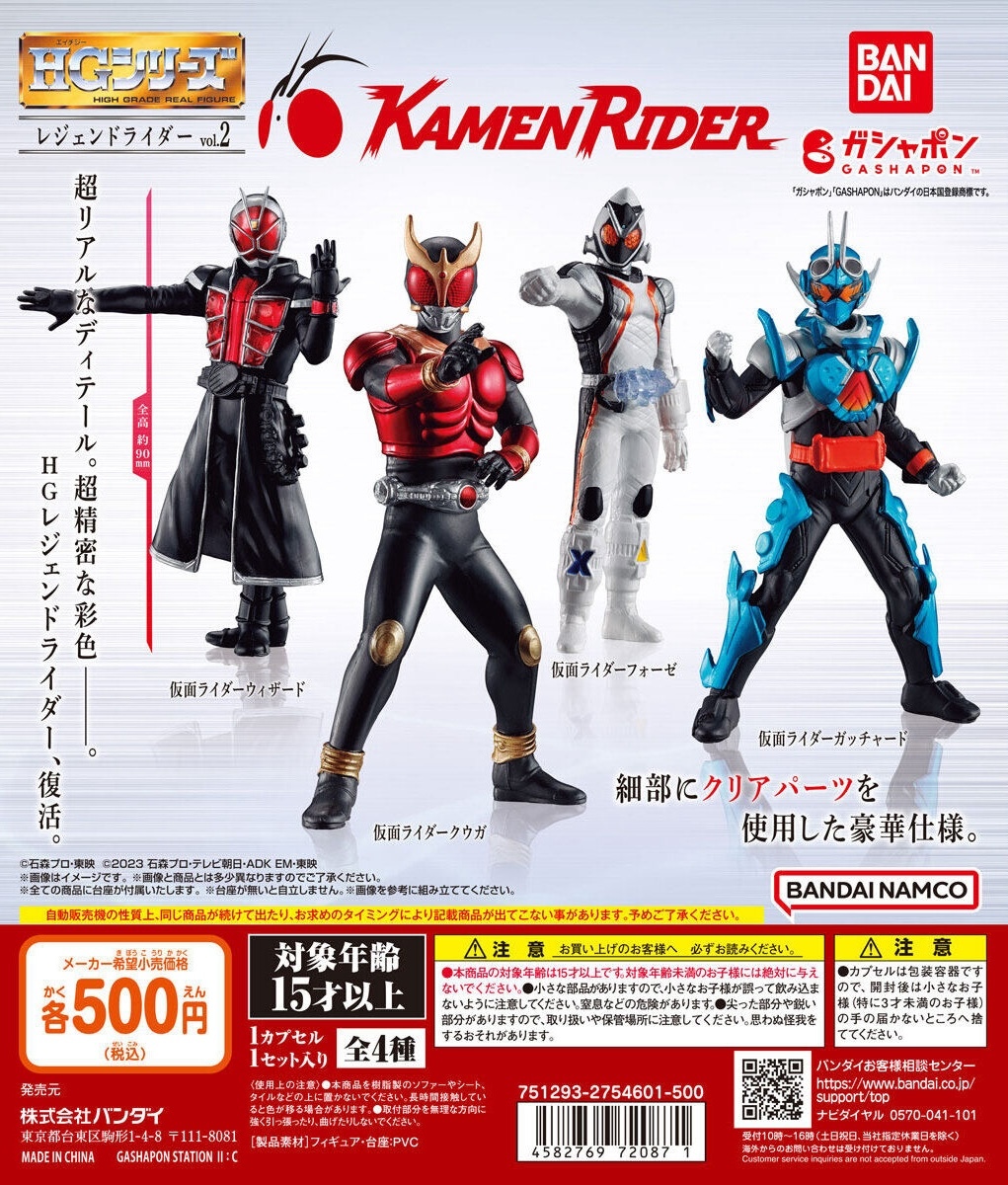 萬代公司轉蛋事業部 GASHAPON 旗下人氣的「High Grade Real Figure」(簡稱 HG)系列推出《假面騎士》主題的第二彈商品——「傳奇騎士 Vol.2」(レジェンドライダ Vol.2)轉蛋,參考售價為每轉 600 日圓,預計於2025年03月第五週開轉!